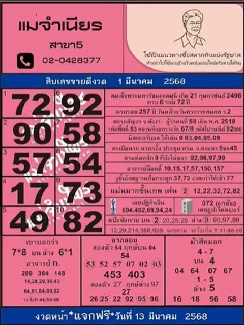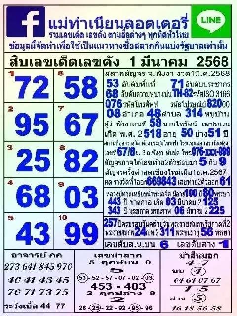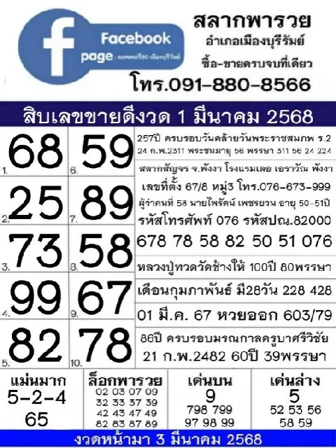 เลขเด็ด เลขมาเเรง เลขดัง "มัดรวม 10อันดับ เลขเด็ดขายดี" งวดวันที่ 1 มีนาคม 2568