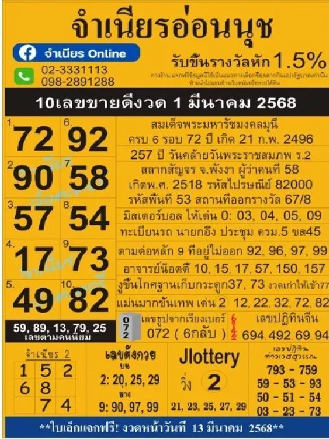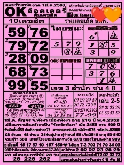 ส่องเลขเด็ด!! มัดรวม 10อันดับ เลขเด็ดขายดี 1 มีนาคม 2568