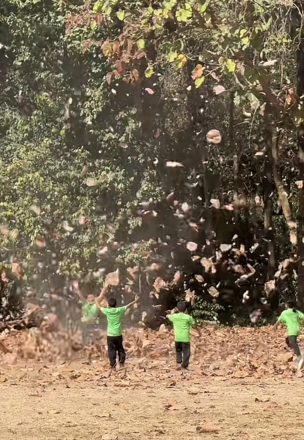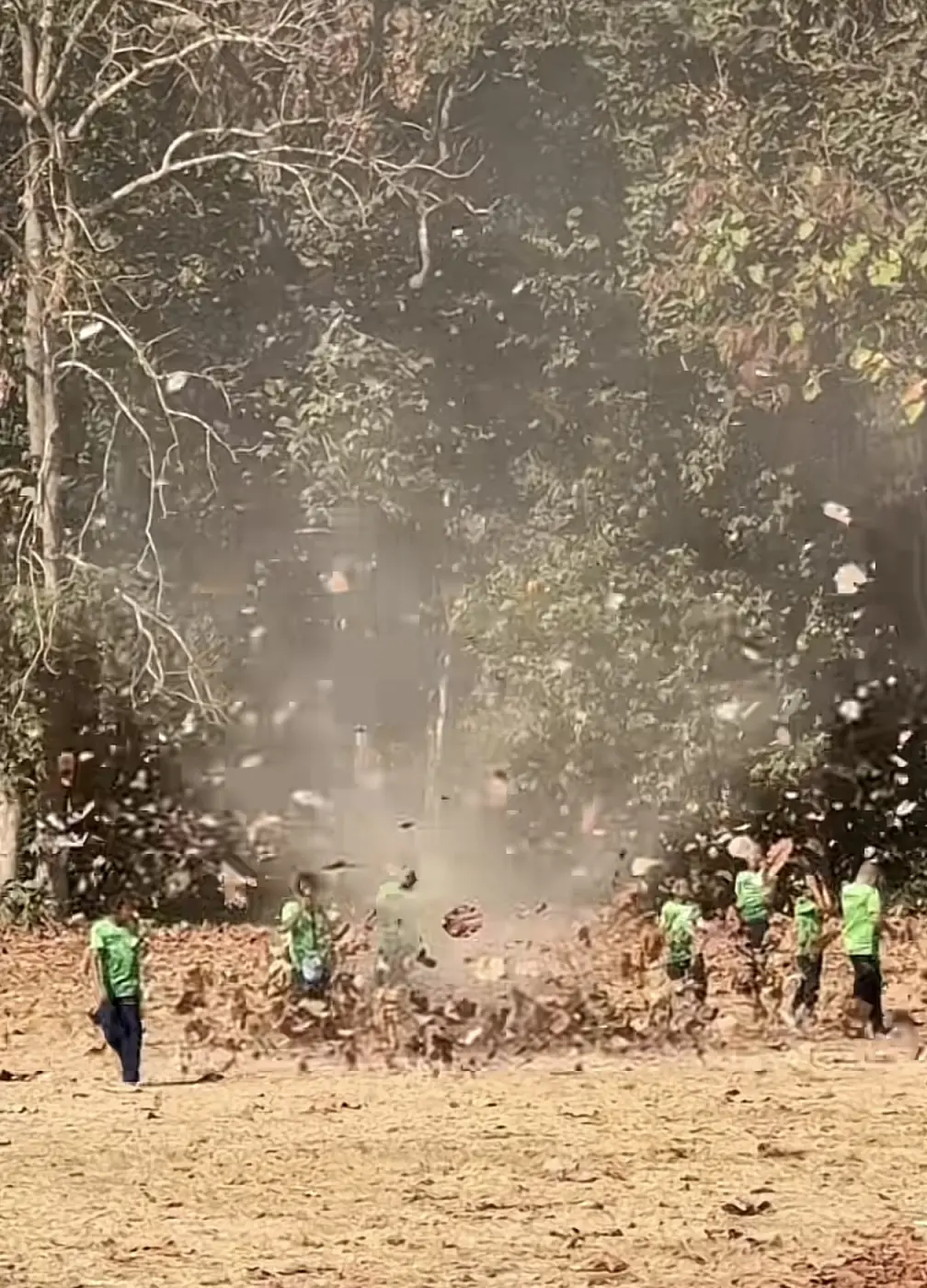 เมื่อเด็กนักเรียนเจอพายุงวงหรือลมหัวกุด หรือบางที่เรียกลมบ้าหมู เกิดขึ้นระหว่างพักเที่ยงในวันที่อากาศร้อน พัดใบไม้เเห้งปลิวลอยเป็นวงกลม ทุกคนวิ่งเข้าหาทันทีเล่นกันอย่างสนุก โดยไม่แคร์เรื่องฝุ่น 🤣 ขึ้นชื่อว่าเด็กงะเนอะ ไม่เป็นไรยังมีภูมิคุ้มกันเยอะอยู่ 😂