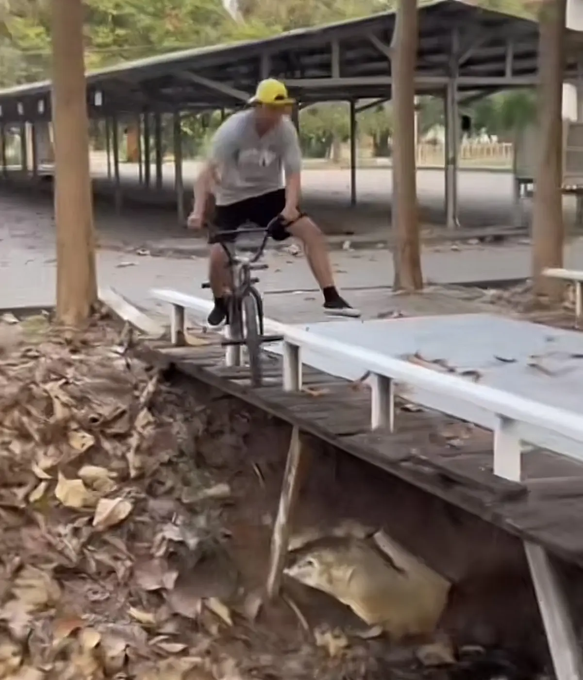 หนุ่มโชว์ขี่จักรยานวิบาก (bmx) ไต่ราวสะพาน เเต่พลาดนิดหน่อย ได้นอนแช่โคลนแทน 😂