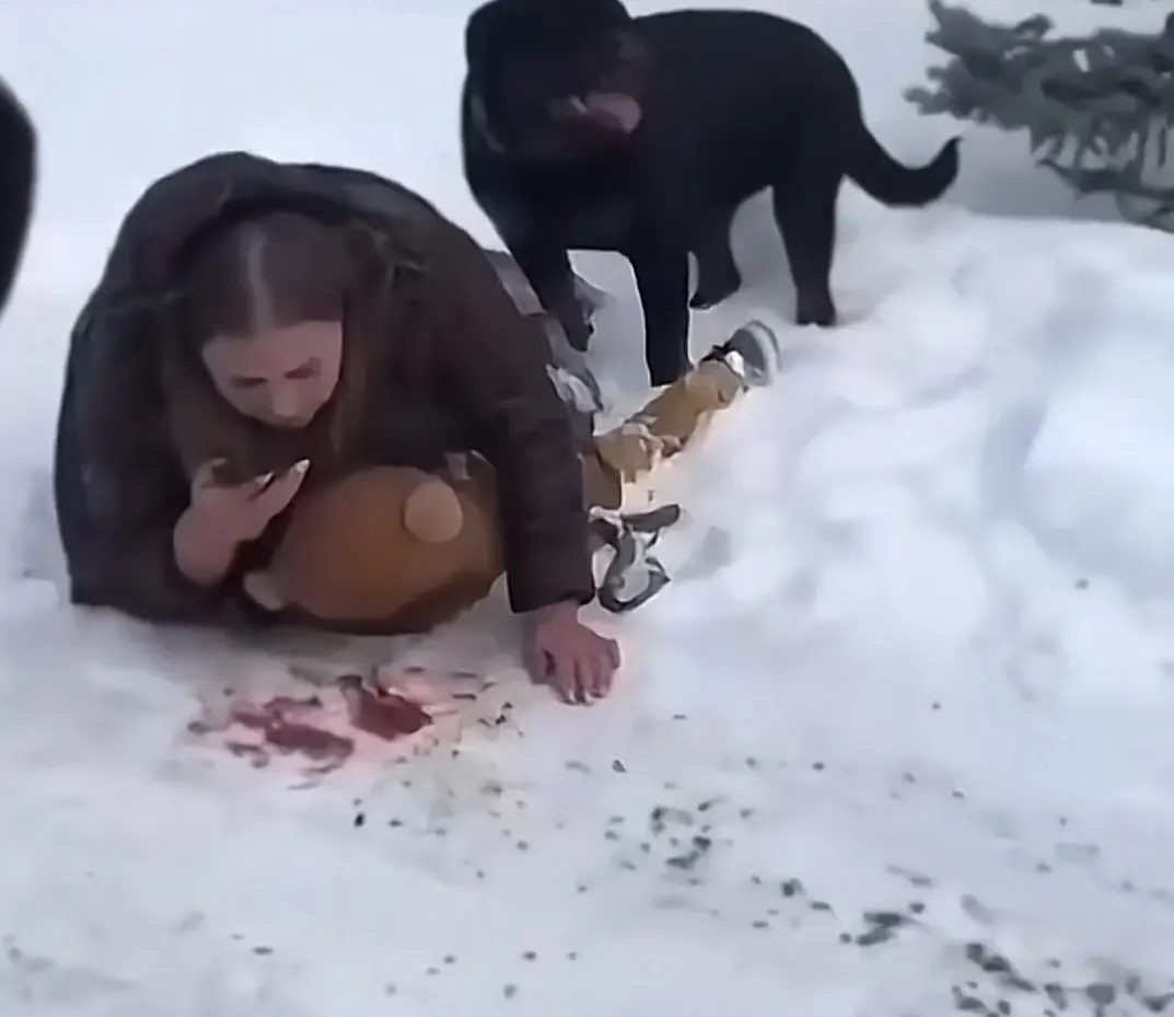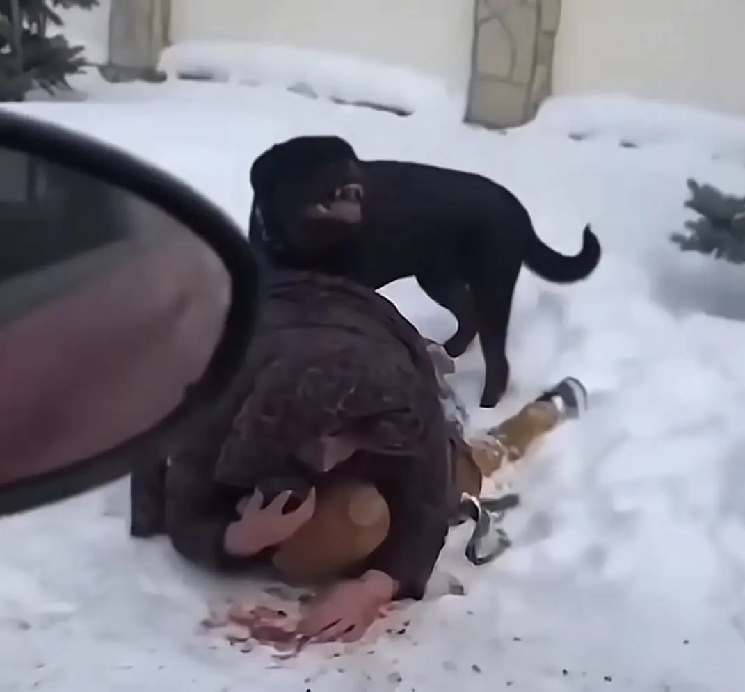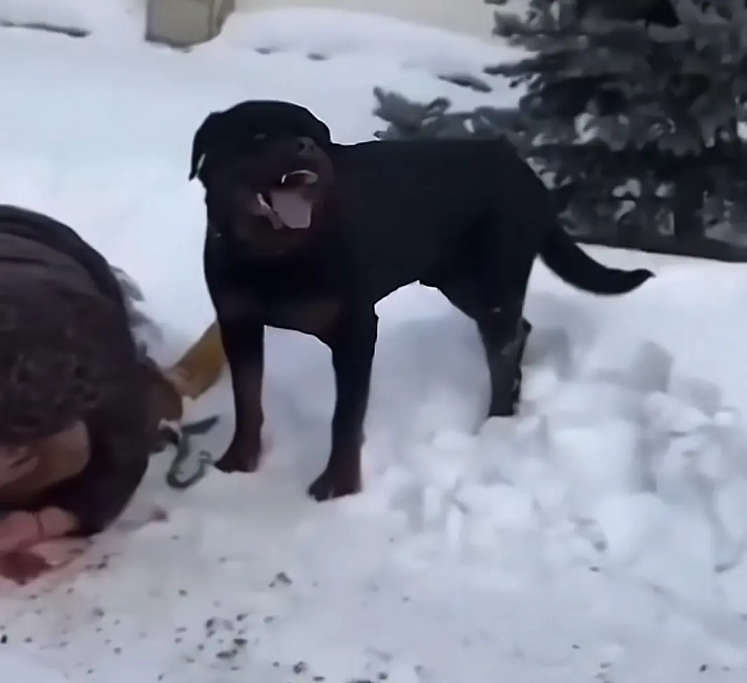 ในเเคปชั่นบอกว่าลูกชายของเธอไม่ได้รับบาดเจ็บใด ๆ แต่แม่ได้รับบาดเจ็บจากการถูกสุนัขกัดหลายจุด ดูจากเลือดที่อยู่บนหิมะก็พอจะเข้าใจ 😢 เจ้าร็อตไวเลอร์ที่ยืนข้าง ๆ พยายามเข้าใกล้แก็มีลูก ถูกคนในรถถีบแตรใส่เพื่อขู่ให้อยู่ห่าง หวังจะได้ไม่ทำร้ายทั้งคู่อีก แต่เจ้าตูบก็ขู่กลับและดูเหมือนจะไม่กลัวด้วย ไม่มีใครสามารถเข้าใกล้ได้