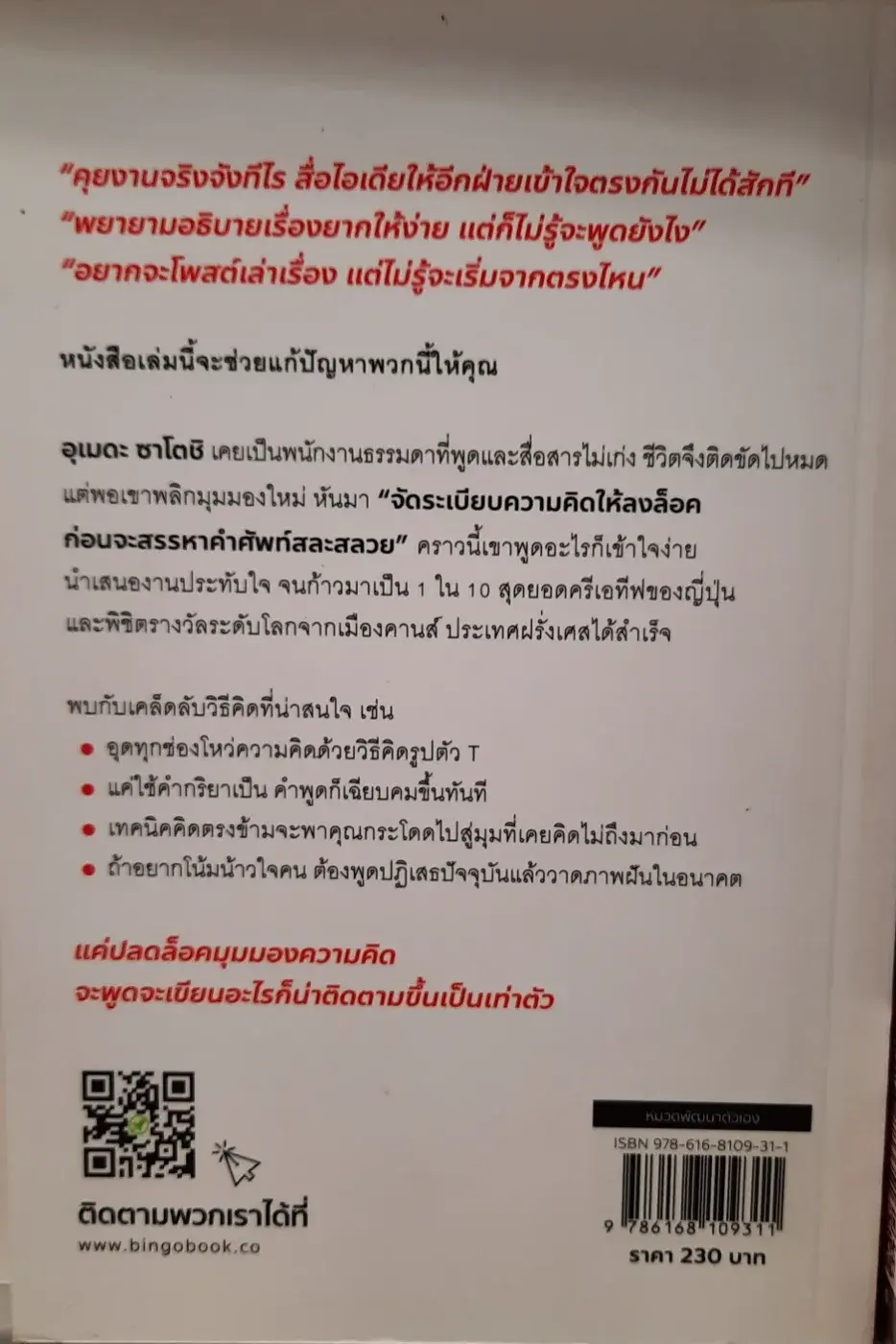- ได้เรียนรู้ว่าถ้าคำพูดเป็นเครื่องมือสำหรับถ่ายทอดความคิด ดังนั้น เราต้องพัฒนาความคิดของตัวเองก่อนพูด ความคิดในหัวสำคัญกว่าคำพูด ถ้าเราอยากสื่อสารให้เข้าถึงใจของอีกฝ่าย เราไม่จำเป็นต้องพูดหรือเขียนให้ดีขึ้น แต่เราต้องรู้ตัวก่อนว่าความคิดของเราดีพอหรือยัง