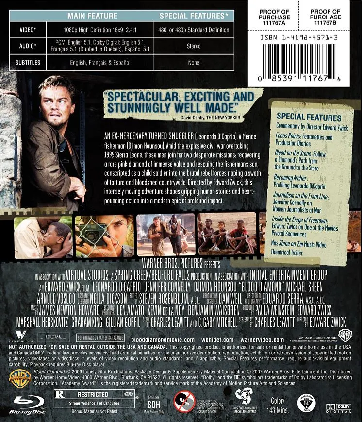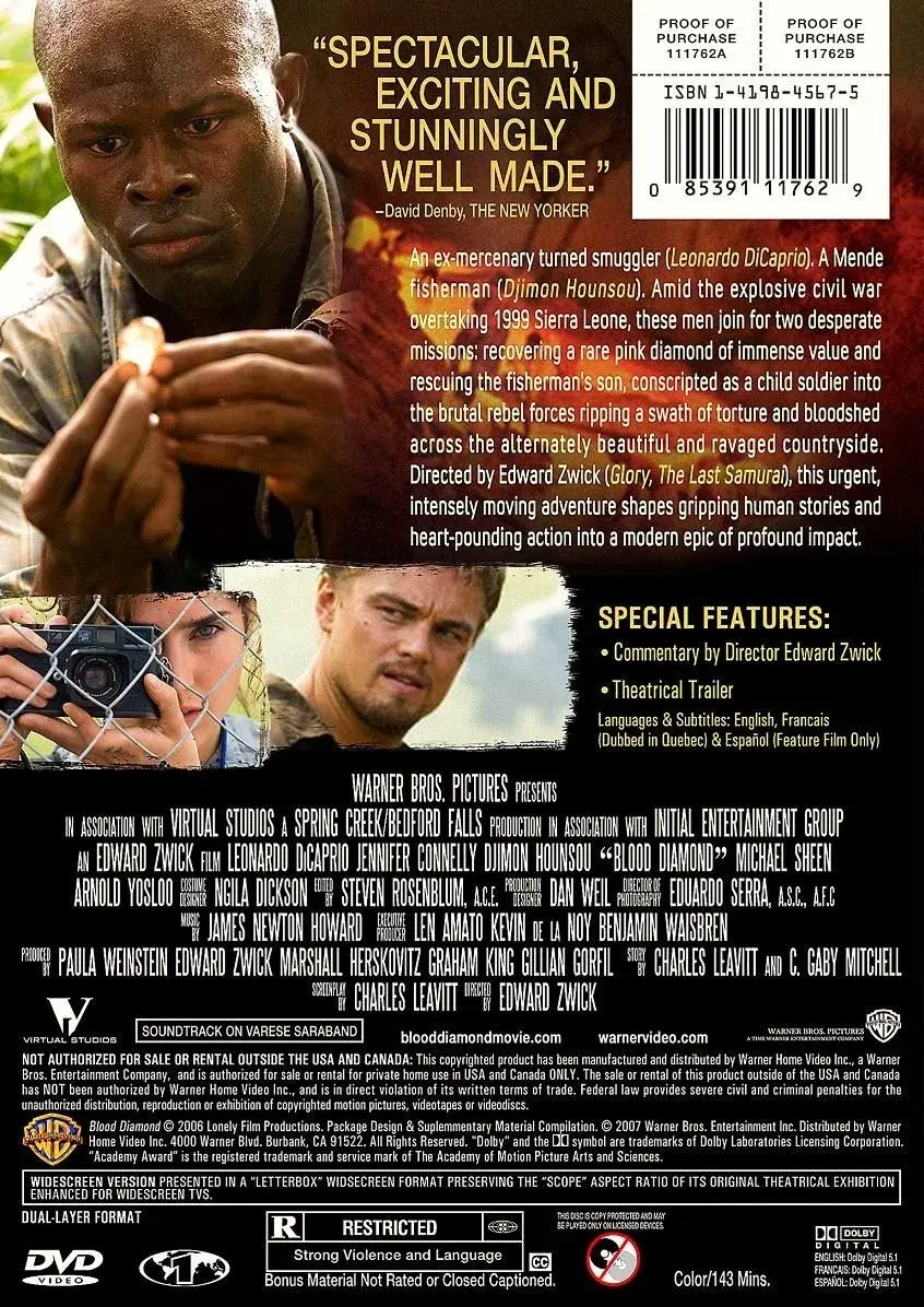 4.การแสดงของ Leonardo DiCapio นับว่าเข้าถึงบทพอสมควร ในฐานะอดีตพลรบก่อนผันตัวมาเป็นคนลักลอบขนของเถื่อน แต่มันราบเรียบ จดจำ ความเป็น Danny Archer มันไม่ค่อยมีอะไรให้จดจำ นอกจากการต่อสู้ที่เก่ง เอาตัวรอดเป็น
