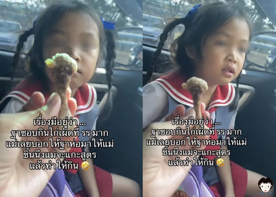 เมื่อลูกสาวชอบกินไก่เผ็ดที่โรงเรียน แม่บอกให้ห่อกลับมาสักชิ้น จะแกะสูตรทำให้กิน ทำไมได้มาแค่กระดูกล่ะลูก 😆
