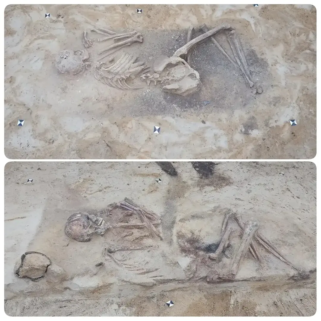 ในทั้งสองกรณี ผู้เสียชีวิตจะหันหน้าไปทางทิศตะวันออก นักโบราณคดีได้ค้นพบหลุมศพอย่างน้อย 10 หลุมที่ความลึกประมาณ 2 เมตร โดย 3 หลุมดูเหมือนจะถูกปกคลุมด้วยเนินฝังศพ การค้นพบที่น่าทึ่งที่สุด ได้แก่ ศพของบุคคล 3 คนที่ดูเหมือนเป็นนักรบ ซึ่งบ่งชี้ได้จากสิ่งของในหลุมศพที่เกี่ยวข้องกับการยิงธนูและการสู้รบ ภายในหลุมศพเหล่านี้พบสิ่งของต่างๆ เช่น ภาชนะเซรามิกรูประฆัง ที่รัดข้อมือหิน และหัวลูกศรหินเหล็กไฟ