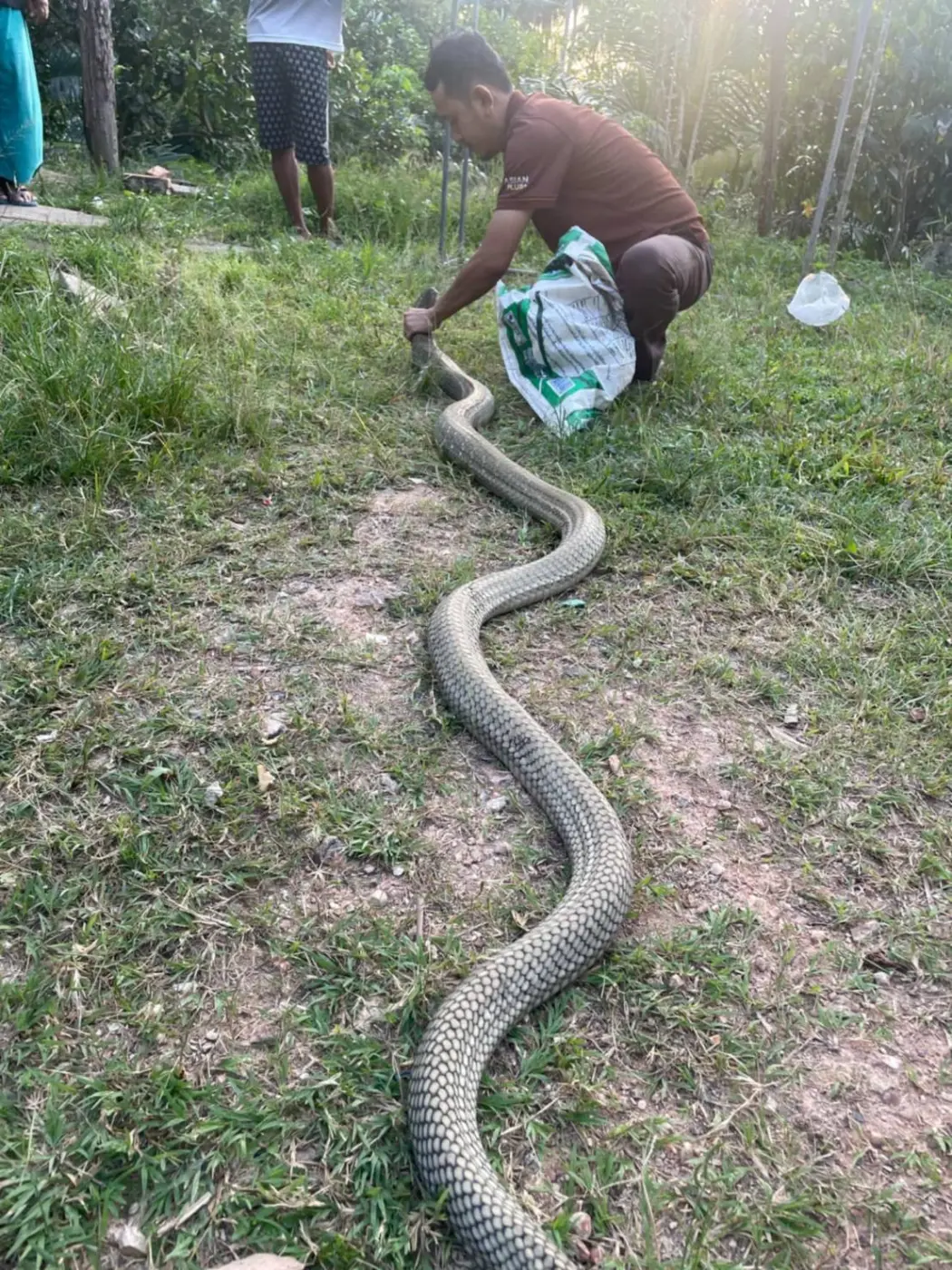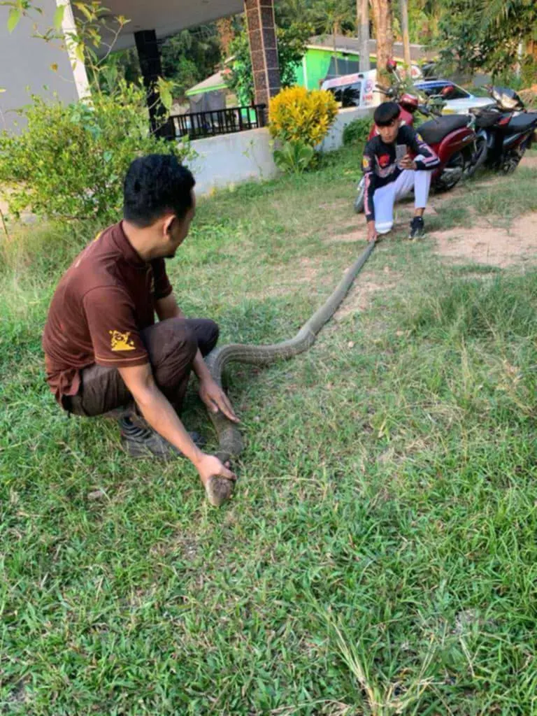ด้านเจ้าของบ้านเผยว่า นี่เป็นครั้งแรกที่พบงูจงอางขนาดใหญ่เช่นนี้เลื้อยเข้ามาใกล้บ้าน