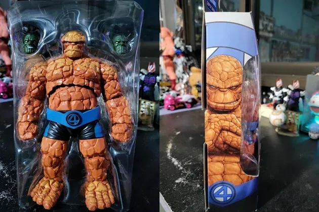 ตัวกล่อง Marvel Legends Series Fantastic Four The Thing จะเป็นกล่องขนาดใหญ่ที่มีพี่อิฐอยู่ พร้อมหน้าของตัวร้ายที่เป็นชิ้นส่วนที่ต้องสะสมให้ครบชุดจึงจะได้ตัวละครพิเศษมา ซึ่งเจ้าตัวนี้คือตัวร้ายที่มีพลังของ Fantastic Four ทั้ง 4 คนอยู่ในตัว