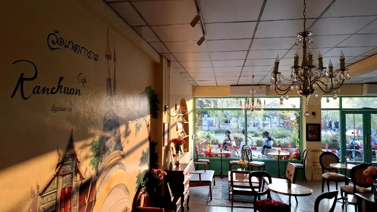 หากคุณกำลังมองหาจุดเช็คอินสวยๆ ในย่านกาดหลวง ตัวเมืองเชียงใหม่ Ranchuan Cafe Chiangmai คืออีกหนึ่งร้านที่ไม่ควรพลาด ตั้งอยู่ริมแม่น้ำปิง ใกล้ตลาด วโรรส ในตึกเก่าอายุกว่า 100 ปี อย่างมีมนต์คลัง ที่ได้ รีโนเวท อย่างลงตัว ผสมผสานระหว่างกลิ่นอายตะวันตก กับความเป็นท้องถิ่น พร้อมคงเสน่ห์ของสถาปัตยกรรมดั้งเดิมไว้อย่างสมบูรณ์แบบ ภายในร้านตกแต่งด้วยดอกไม้สวยงาม ทั่วทุกมุม ให้ความรู้สึกสดชื่นและอบอุ่น พร้อมทั้งมีมุมนั่งหลากหลาย ทั้งโซนกระจกกว้างที่มองเห็นบรรยากาศผู้คนผ่านไปมา และห้องแอร์เย็นสบาย เหมาะสำหรับการนั่งพักผ่อนหรือทำงานไปพร้อมกับจิบกาแฟหอมกรุ่น