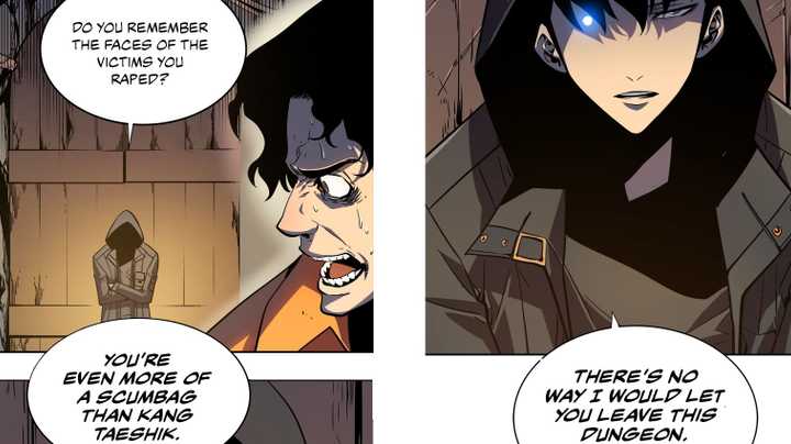 "หากพวกนายเป็นฮันเตอร์ ฉันก็บอกว่าพวกนายควรพร้อมที่จะถูกล่าแล้ว "จาก ซองจินวู Solo Leveling บทที่ 23