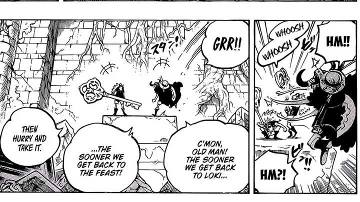 โอดะซึ่งเป็นผู้เล่าเรื่องที่เก่งกาจได้ใช้ส่วนนี้ในการดำเนินเรื่องต่อหรือแนะนำแนวคิดใหม่ให้กับเรื่องราวในลักษณะที่แยบยลและมองข้ามได้ง่าย แนวคิดใหม่เหล่านี้ประการหนึ่งอาจบ่งบอกเป็นนัยว่าแชนค์สเป็นผู้อยู่เบื้องหลังความสนใจของลูฟี่ในการปลดปล่อยโลกิเจ้าชายผู้ต้องคำสาปอาจเป็นบททดสอบเพื่อดูว่ากัปตันหมวกฟางพร้อมสำหรับสงครามครั้งสุดท้ายอันเป็นลางไม่ดีของซีรีส์นี้ หรือ ไม่