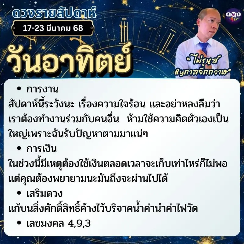 ดวงรายสัปดาห์ 17-23 มีนาคม