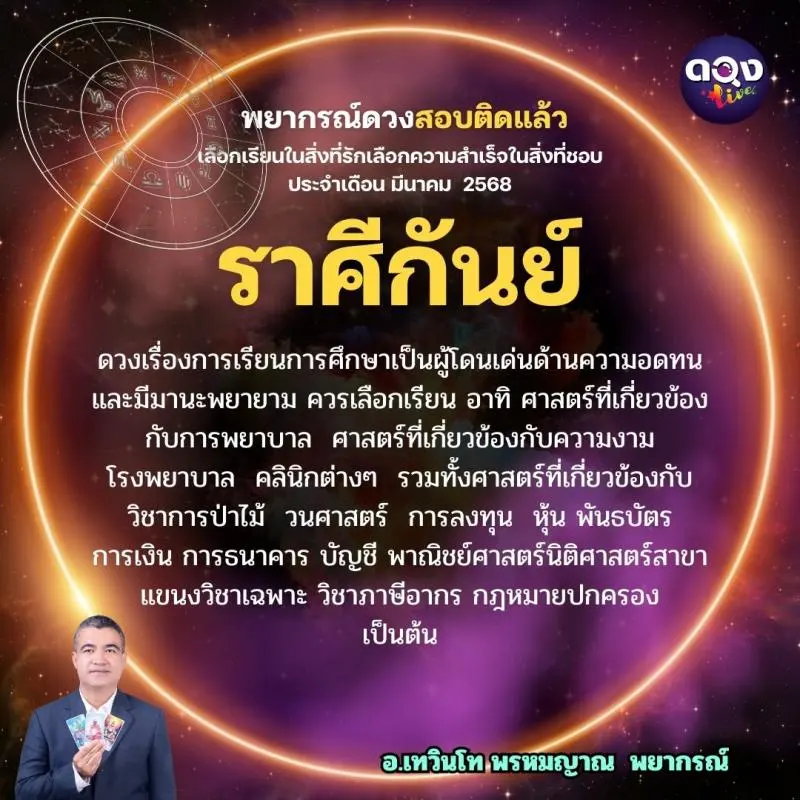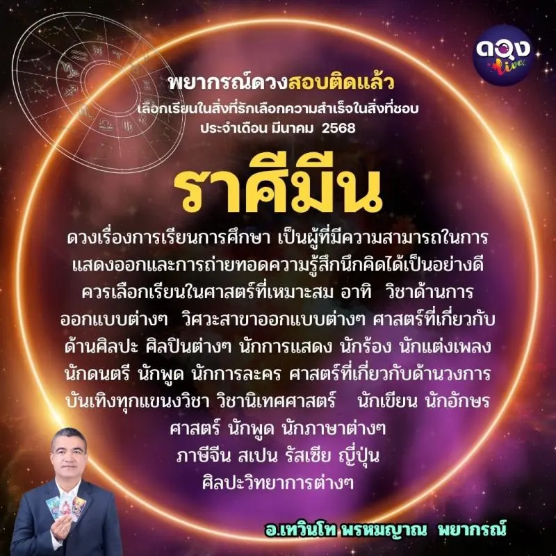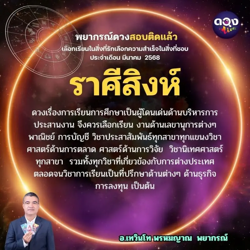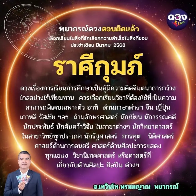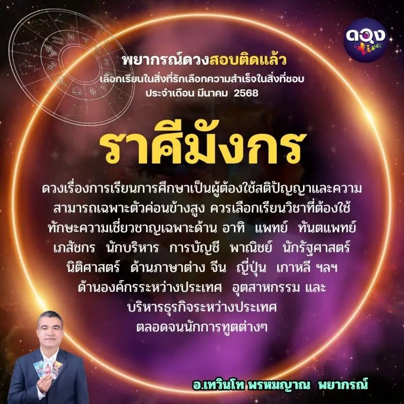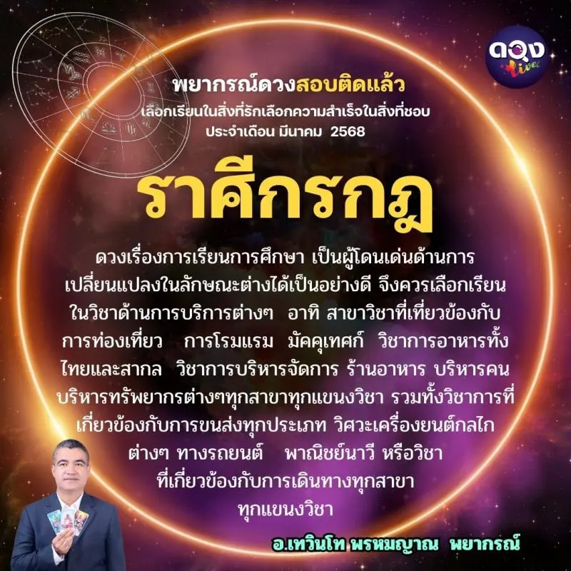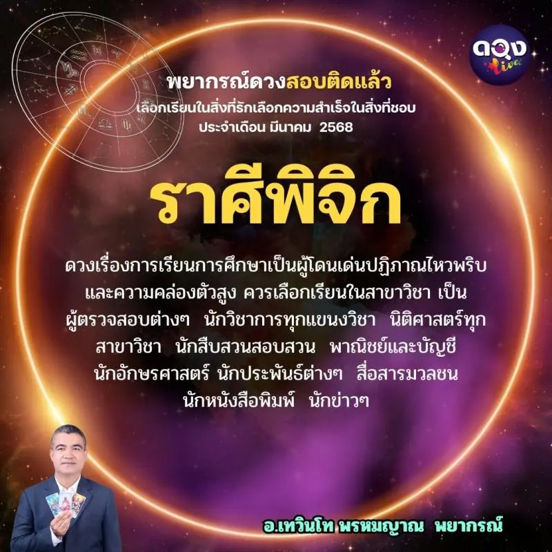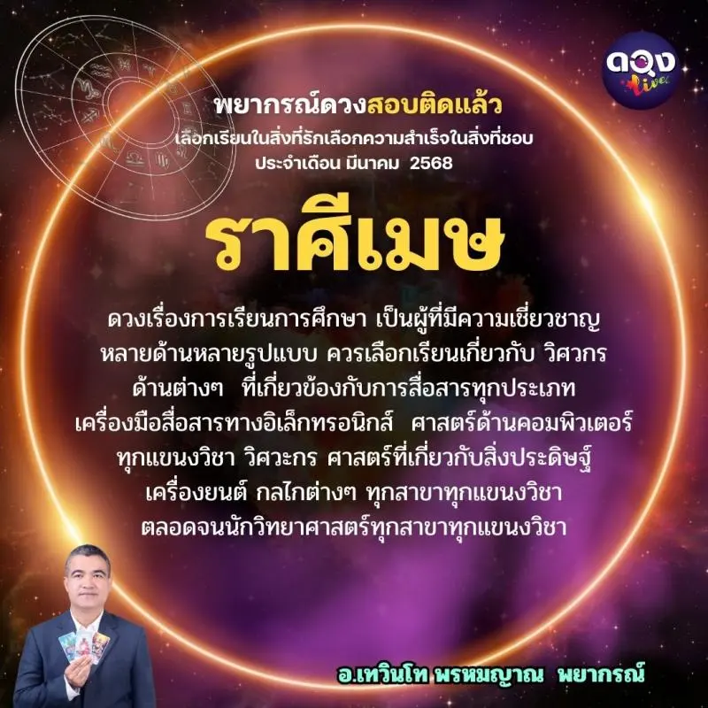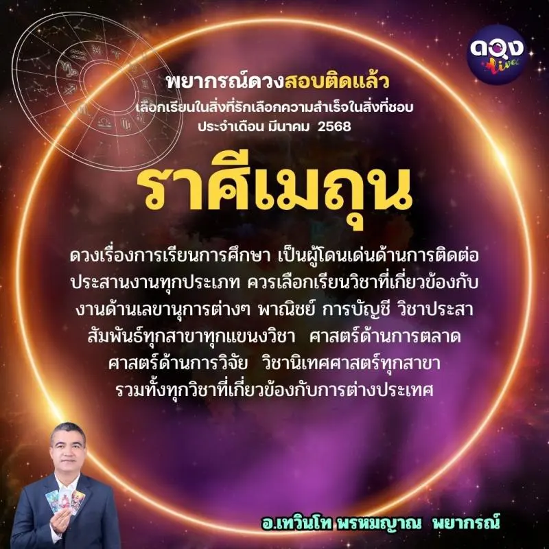 พยากรณ์ดวง "สอบติดแล้ว" เลือกเรียนในสิ่งที่รัก เลือกความสำเร็จในสิ่งที่ชอบ ประจำเดือนมีนาคม 2568 พยากรณ์โดย อาจารย์เทวินโท พรหมญาณ พยากรณ์