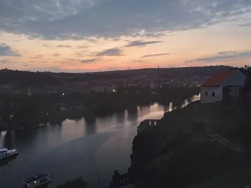 วันต่อมา ภาพวิว Prague Castle แม่น้ำ Vltava สะพาน Charles Bridge ยอดโบสถ์และวิหารต่างๆ ที่ไกลลิบๆ จากจุดชมวิวที่เรียกว่า Vysehrad อีกโค้งแม่น้ำตรงนี้ ตอนพระอาทิตย์ใกล้ตกดิน เป็นอีกวิวหนึ่งที่ไม่เคยเห็น เป็นอีกมุมหนึ่งที่ได้ยินเสียงลม แทรกด้วยภาษาท้องถิ่นพูดคุยของเด็กๆ และพ่อแม่เป็นพักๆ สลับกับเสียงฝีเท้าวิ่งจ๊อกกิ้งของเหล่าผู้รักสุขภาพ ผู้เขียนได้แต่นั่งทอดสายตาไปไกล ปล่อยให้ลมเย็นปะทะหน้า ไม่คิดอะไรเลย