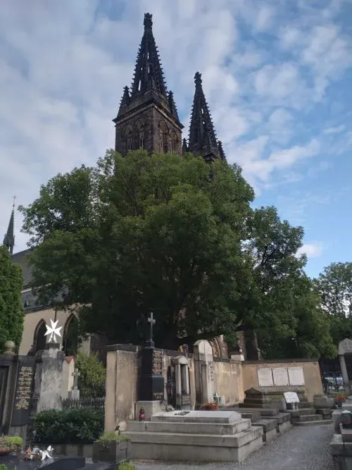 “เดี๋ยวสุสาน Vysehrad จะปิดแล้วนะ ป๊ะเข้าไปดูกัน” เพื่อนสาวเจ้าถิ่นมาปลุกจากฝันยามเย็น สุสาน Vysehrad เป็น สถานที่ฝังศพของนักแต่งเพลง ศิลปิน ประติมากร นักเขียน และผู้ที่อยู่ในแวดวงวิทยาศาสตร์และการเมืองมากมาย ซึ่งเป็นสุสานขนาดใหญ่ ที่สะดุดตาคือสัญลักษณ์หรือรูปปั้นสลักหน้าที่ฝังศพ เพื่อแสดงความอาลัยให้แก่ผู้ล่วงลับ เช่น นักเขียน ก็จะมีปูนปั้นเป็นรูปกองหนังสือหน้าที่ฝังศพ ผู้กำกับหนัง ก็จะมีสเลท (ไม้คัทซีนถ่ายหนัง) หน้าที่ฝังศพ นักกีฬาสกีน้ำแข็ง ก็จะมีไม้สกีหน้าที่ฝังศพ นักเขียนการ์ตูน ก็จะมีภาพตอนเขียนการ์ตูนหน้าที่ฝังศพ จึงเป็นการเดินเยี่ยมชมสุสานที่เพลิดเพลินที่สุด