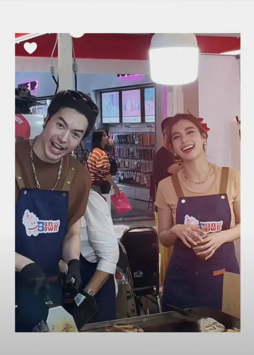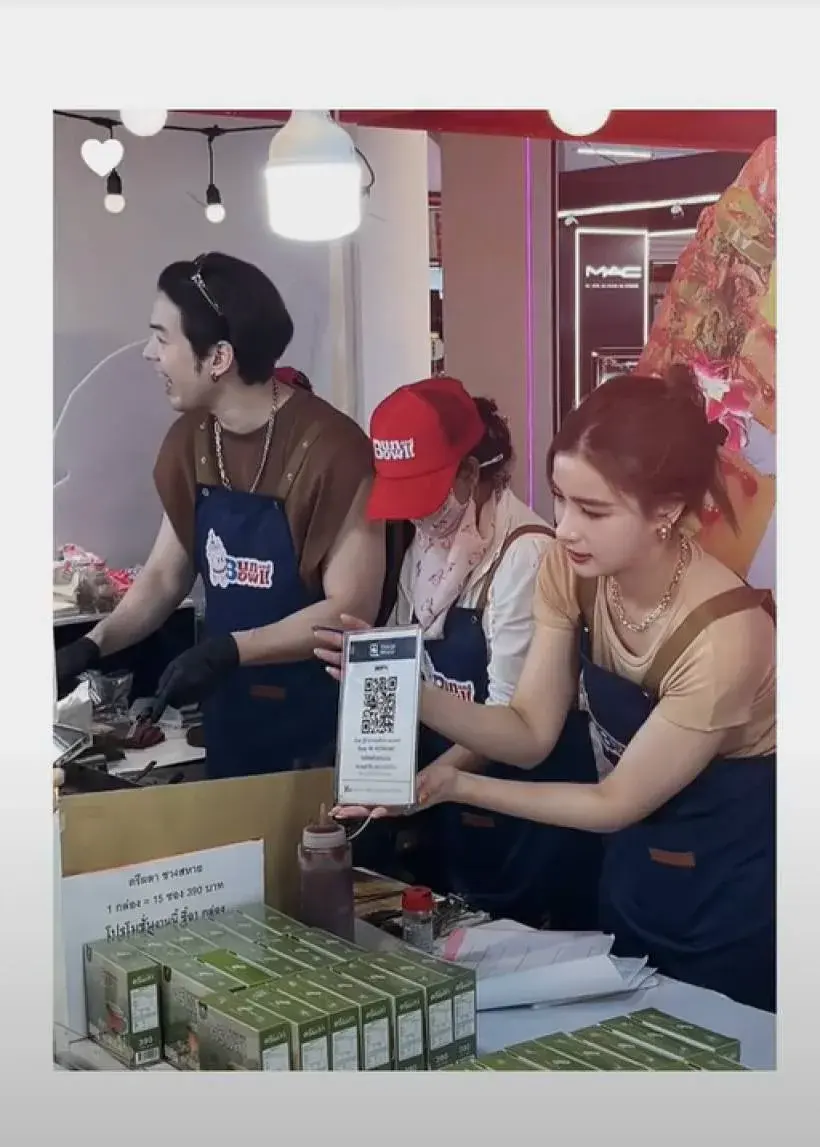 สิ่งที่พิเศษยิ่งกว่านั้นคือโมเมนต์น่ารัก ๆ ระหว่างวิวกับแม็ค ที่หยอกล้อกันไปมาแบบธรรมชาติ ทำให้บรรยากาศที่บูธเต็มไปด้วยความสดใส ไม่ว่าจะเป็นการช่วยกันจัดจานแบบทีมเวิร์กเป๊ะ ๆ หรือการส่งสายตาให้กันและกันอย่างหวานหยดจนคนรอบข้างยิ้มตามแบบไม่รู้ตัว แถมยังมีแฟนคลับบางคนที่ถึงกับแซวว่า "นี่มันบูธแฮมเบอร์เกอร์ หรือบูธแจกความหวานกันแน่?" เพราะแทบทุกจังหวะของทั้งคู่นั้นเต็มไปด้วยความละมุนละไมเกินต้านทานจริง ๆ