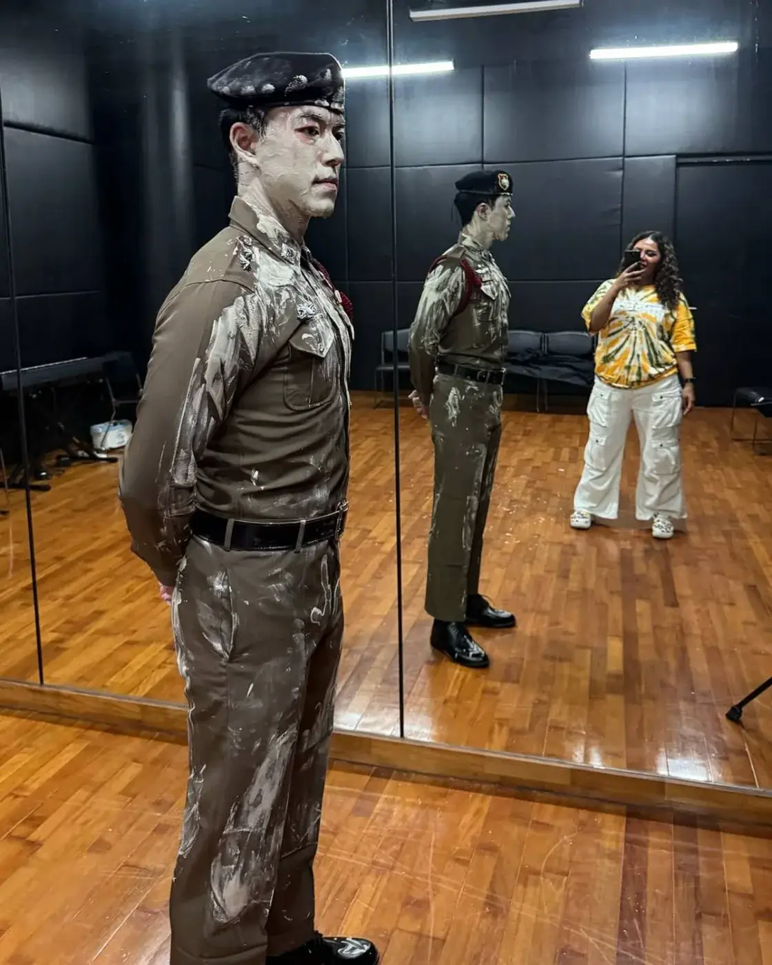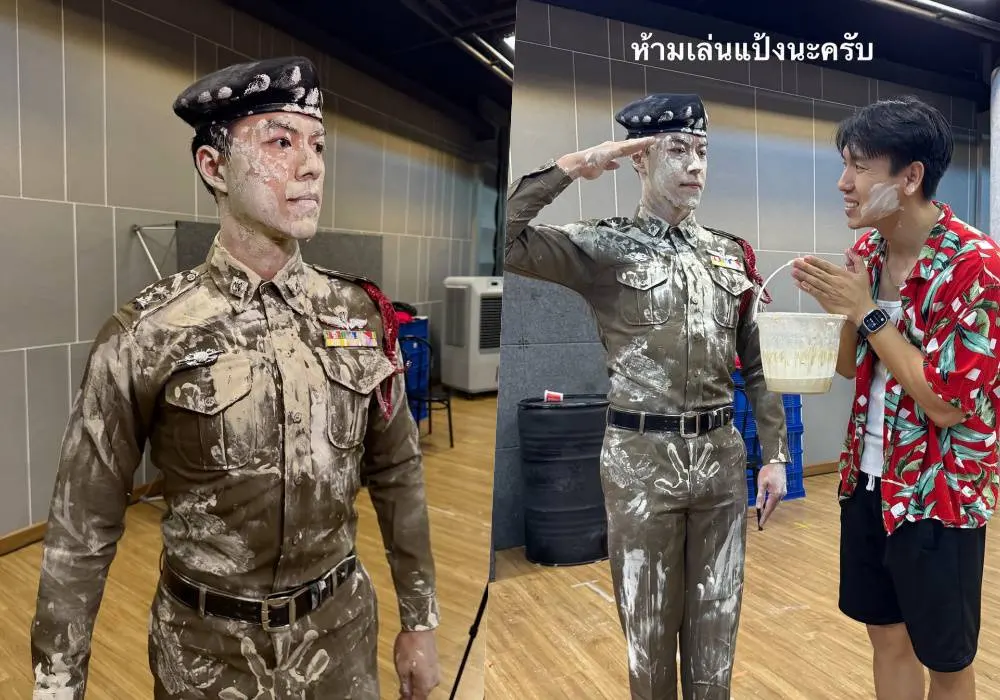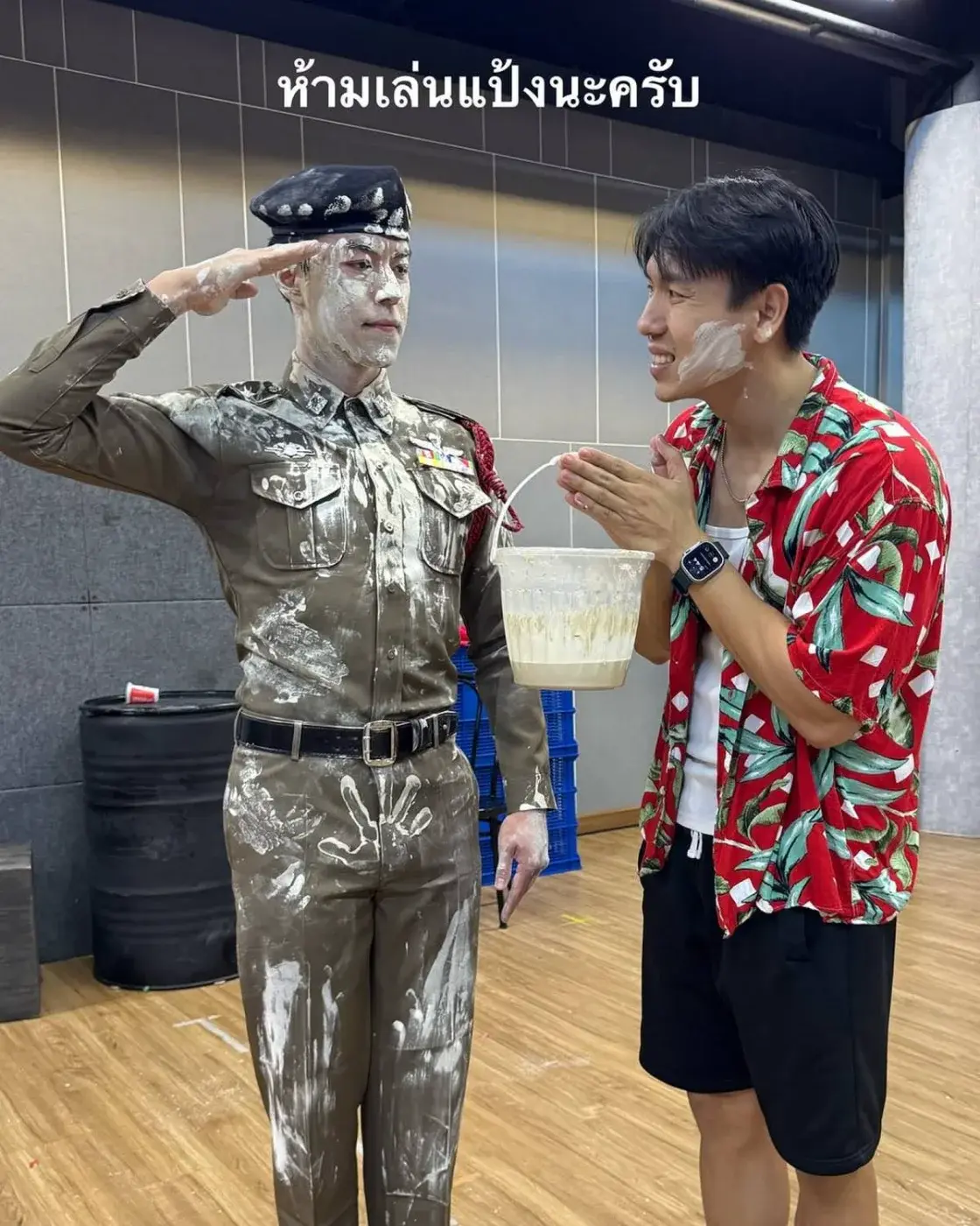 โดยในคลิปดังกล่าว หนุ่มนายมาในลุคที่แฟนคลับเห็นแล้วต้องกดไลก์รัว ๆ กับบทบาท "ตำรวจสุดหล่อ" ที่ลงพื้นที่ปฏิบัติหน้าที่แบบพิเศษสุด ๆ คือ การขออนุญาตปะแป้งให้ตำรวจด้วยท่าทางที่สุภาพเรียบร้อยสุด ๆ พนมมือไหว้ก่อนจะลงแป้งอย่างเบามือ นอบน้อมสุด ๆ เห็นแล้วแฟนคลับใจละลายกันเป็นแถว แต่! ความฮามันอยู่ตรงนี้ค่ะ เมื่อดูเหมือนว่าความตั้งใจจะปะแป้งเบา ๆ ของหนุ่มนาย ดันเผลอมือไวเกินไปนิด ตำแหน่งการวางมือของเจ้าตัวเลยไปอยู่ในจุดที่เรียกเสียงหัวเราะและแซวสนั่นกันทั่วโซเชียล เพราะเป็นจุดพีคแบบเต็มไม้เต็มมือ!