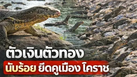 โคราชสะเทือน! ตัวเงินตัวทองนับร้อยยึดคูเมือง เดินกลางตลาดประตูผี ชาวบ้านผวาหนัก วอนรัฐเร่งจัดการก่อนบานปลาย