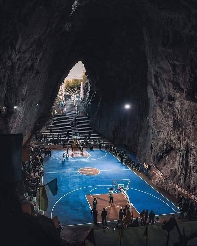ใครจะเชื่อว่าในมณฑลกุ้ยโจว ประเทศจีน จะมีสนามบาสเกตบอลตั้งอยู่ภายในถ้ำหินปูน!