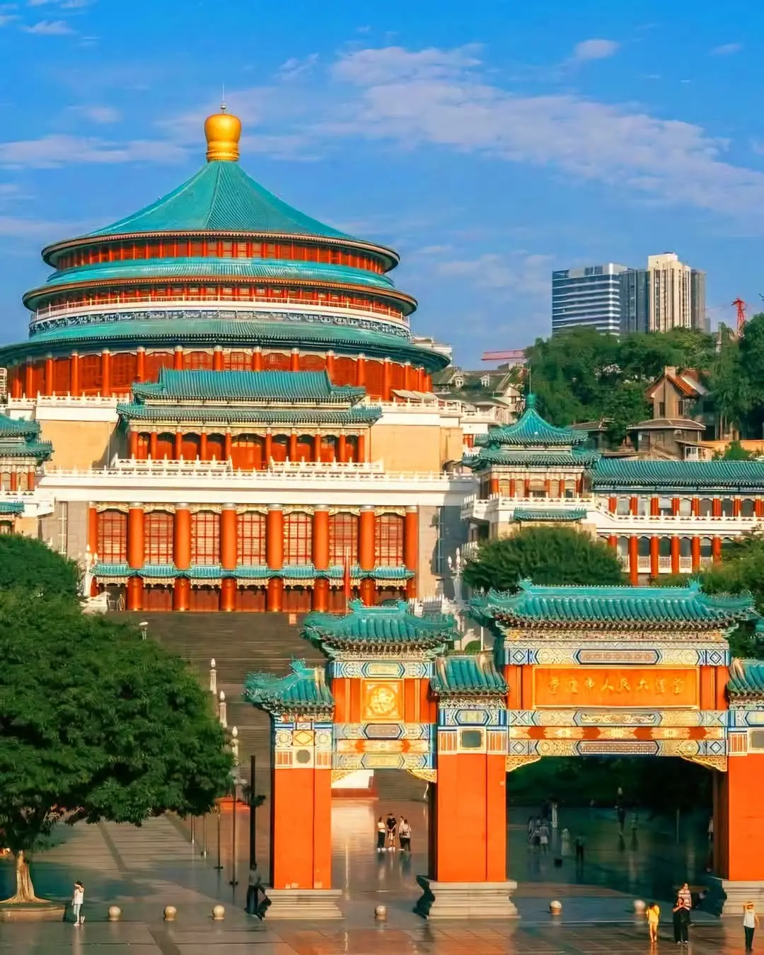 โดดเด่นด้วยโดมขนาดใหญ่ที่ได้รับแรงบันดาลใจจากพระราชวังเทียนถานในปักกิ่ง อาคารแห่งนี้จึงเป็นทั้งสัญลักษณ์ทางการเมืองและวัฒนธรรมอันทรงพลังของเมืองฉงชิ่ง ในแต่ละวัน พื้นที่บริเวณ จัตุรัสด้านหน้า จะคลาคล่ำไปด้วยผู้คน ไม่ว่าจะมาเดินเล่น ถ่ายภาพ ออกกำลังกาย หรือเพียงแค่ชื่นชมความงามของแสงไฟในยามค่ำคืนที่เปล่งประกายรอบอาคาร