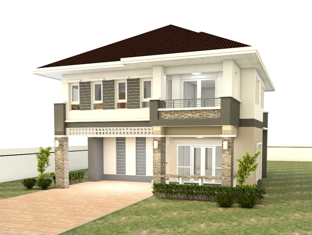 แบบบ้าน 2 ชั้นสไตล์โมเดิร์นที่ใช้โทนสีเรียบๆ เช่น ขาว เทา หรือเอิร์ธโทน เพื่อสร้างบรรยากาศที่เรียบง่ายและทันสมัย โดยการออกแบบจะเน้นความสะอาดตา ช่วยให้บ้านดูหรูหราและไม่ล้าสมัย การตกแต่งในลักษณะนี้เหมาะสำหรับผู้ที่ชื่นชอบความมินิมอลและบรรยากาศสงบ การดูแลรักษาง่ายและเหมาะกับคนที่ใช้ชีวิตในเมืองหรือในชุมชนที่ต้องการบ้านที่ดูดีมีสไลต์ สะอาดตา และมีดีไซน์ที่ทันสมัยมากขึ้น