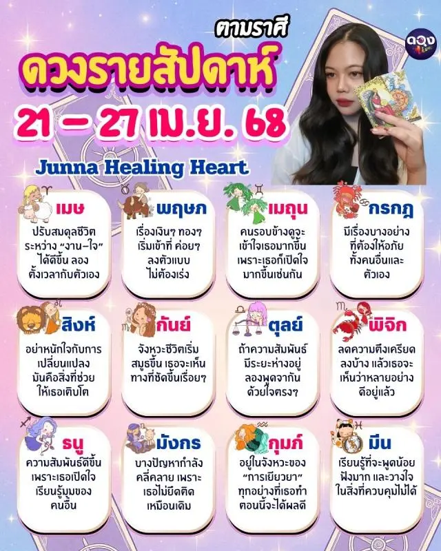 ดวงรายสัปดาห์ตามราศีประจำวันที่ 21 – 27 เมษายน 2568 โดย Junna Healing Heart