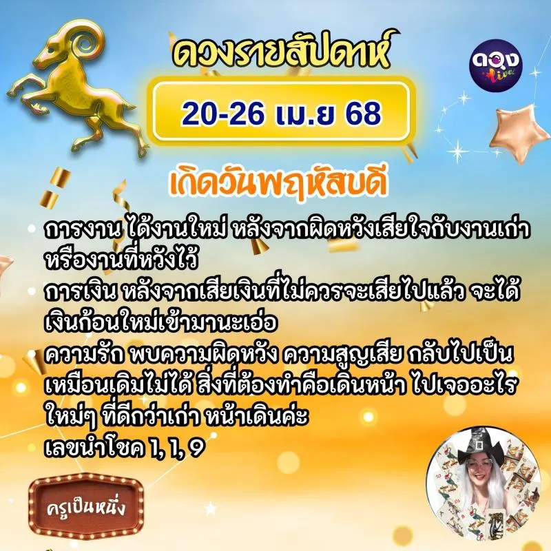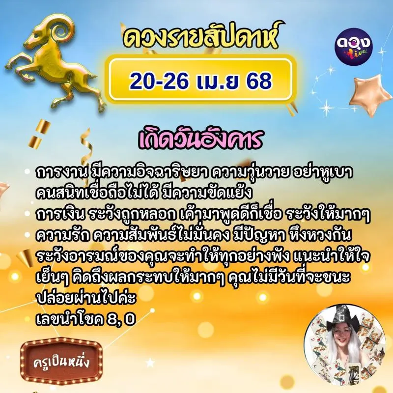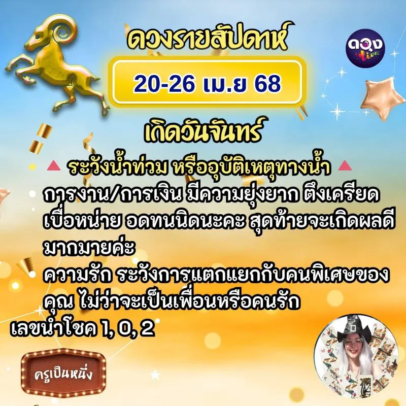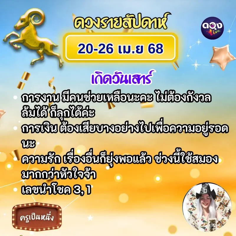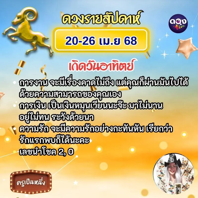 ดวงรายสัปดาห์ตามวันเกิดประจำวันที่ 20 – 26 เมษายน 2568 by ครูเป็นหนึ่ง