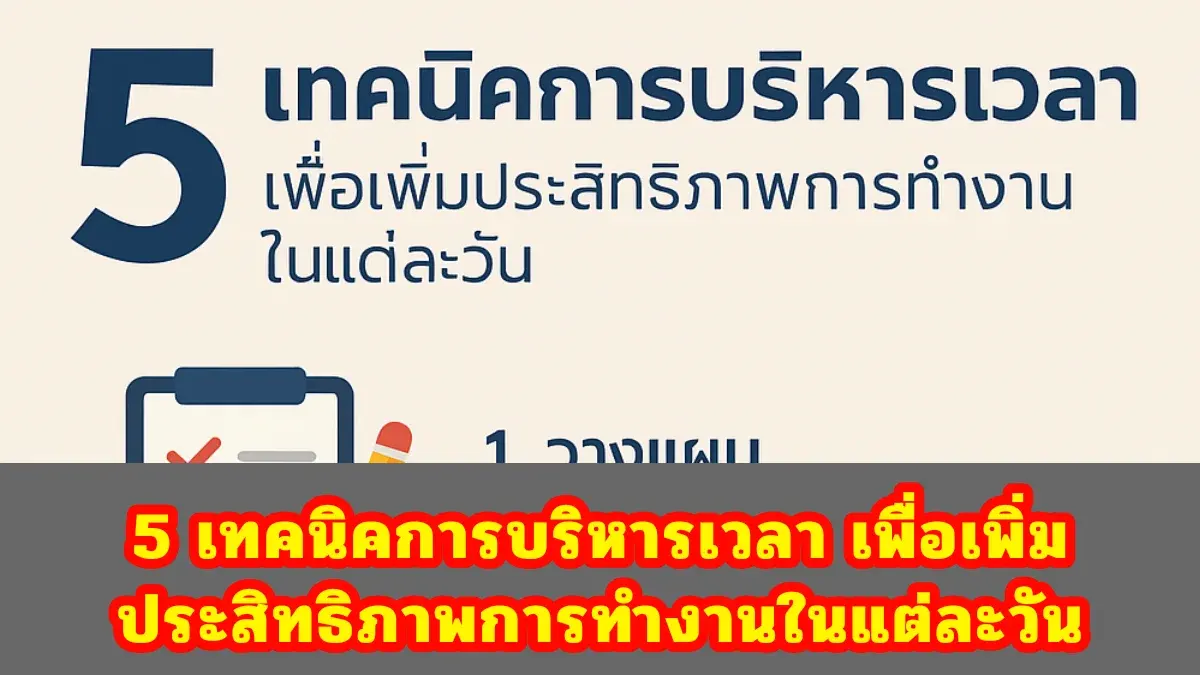 ในโลกยุคปัจจุบันที่เวลาเหมือนจะเดินเร็วขึ้นทุกวัน หลายคนมักพบกับปัญหา "งานไม่เสร็จ" หรือ "ทำงานไม่ทัน" ทั้งที่ตั้งใจทำอย่างเต็มที่แล้วก็ตาม ซึ่งสาเหตุหลักไม่ได้มาจากการขาดความสามารถ แต่มักเกิดจากการ "บริหารเวลา" ที่ยังไม่ดีพอ วันนี้เราจึงขอนำเสนอ 5 เทคนิคการบริหารเวลา ที่จะช่วยเพิ่มประสิทธิภาพการทำงานในแต่ละวันให้คุณอย่างเห็นผลจริง!