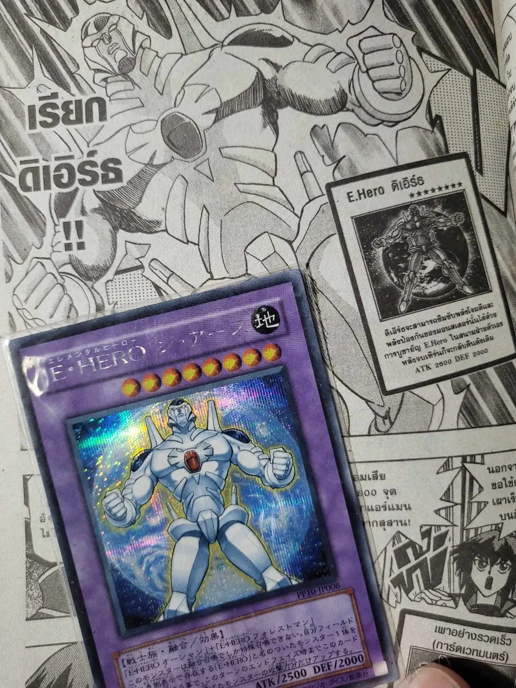 ใบต่อมาเป็นของพระเอกในเรื่องอย่าง E.Hero ดิเอิร์ธ ที่ได้มาจาก YU-GI-HO GX เล่ม 1 ภาษาญี่ปุ่น