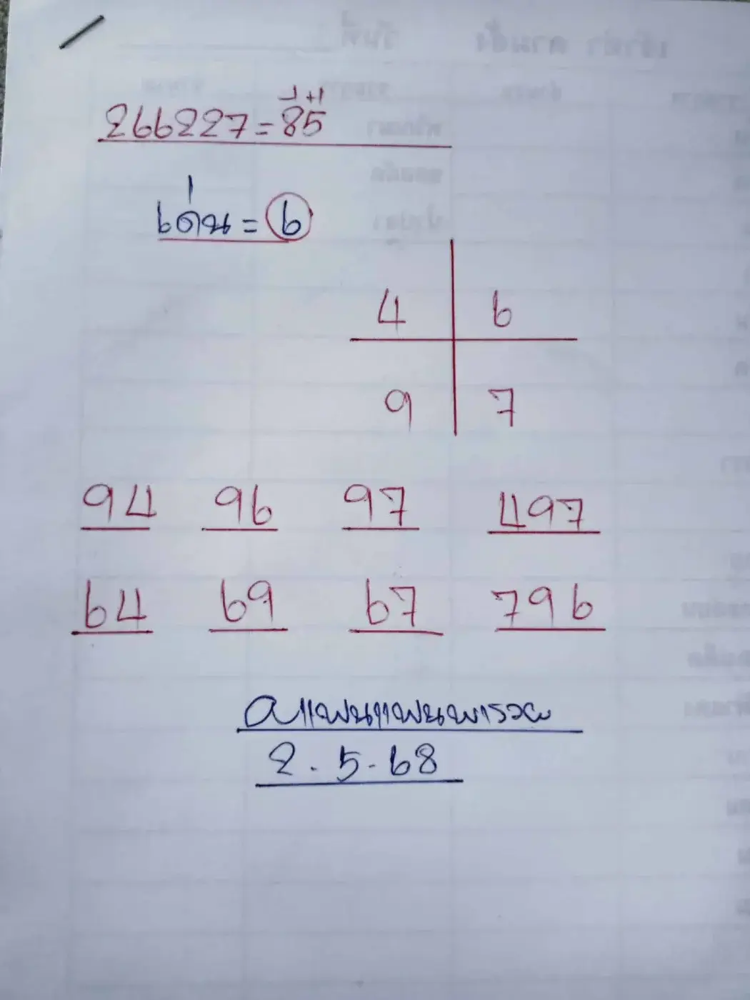 - เลขสองตัว : 94 – 96 – 97 – 64 – 69 – 67