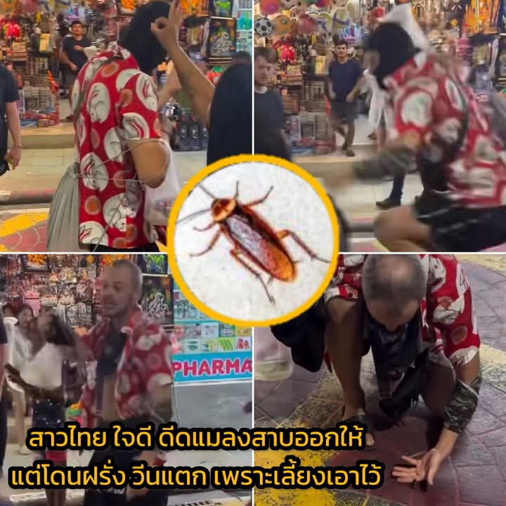 สาวไทย ใจดี ดีด แมลงสาบ ออกให้ คิดว่ามาเกาะบนหัวฝรั่ง แต่กลับโดนฝรั่ง วีนแตก โวยวาย กระโดดใส่ หวิดทำร้ายร่างกาย