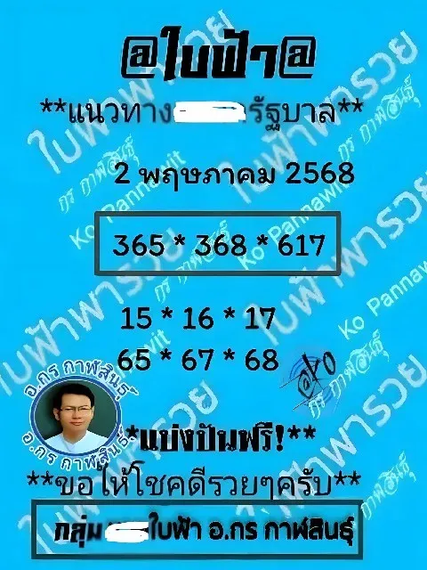 เลขเด็ด สำนักดัง ใบฟ้า+กลมเกตุนุติ+ย่าโม+เจ้นุ๊ก งวดวันที่ 2 พฤษภาคม 2568