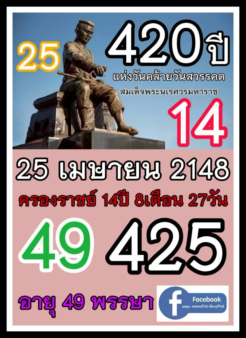 "เลขเด็ดเลขดังวันสำคัญ" งวดวันที่ 2 พฤษภาคม 68 มาแล้ว!..ส่องเลยก่อนหวยหมด! เหลือเวลาอีกเพียงไม่นานก็ถึงวันหวยออกแล้ว สำหรับในงวดที่ผ่านมาไม่ทราบว่ามีใครถูกหวยกันบ้าง ถ้าถูกก็ขอแสดงความยินดีด้วย ส่วนคนที่ไม่ถูกหวยก็อย่าเสียใจ เพราะในงวดวันที่ 2 พฤษภาคม 68 นี้ เราได้เตรียมเลขเด็ด เลขดังดีๆ มาให้ดูกันอีกเช่นเคย รีบมาลุ้น มารวยก่อนใคร ลองเข้ามาอ่านในกระทู้นี้เผื่อจะมีแนวทางดีๆ เพื่อนำไปใช้ในการเสี่ยงโชคกันดู เพราะทางเราได้รวบรวมเอาเลขเด็ด เลขดังจากวันสำคัญต่างๆ มาให้คุณได้พิจารณากัน บอกเลยเรื่องความไวในการเสิร์ฟข้อมูลเราเป็นที่หนึ่งอยู่แล้ว เพราะรู้ว่าทุกๆ นาทีของคุณนั้นมีค่า กว่าจะไปสรรหาลอตเตอรี่ที่แผงหวย เกรงว่าจะไม่ทันการ และหวยเด็ดจะหมดแผงเอาซ่ะก่อน เลยต้องรีบๆ กันหน่อย เพราะความรวยนั้นไม่เคยรอใครอยู่แล้ว