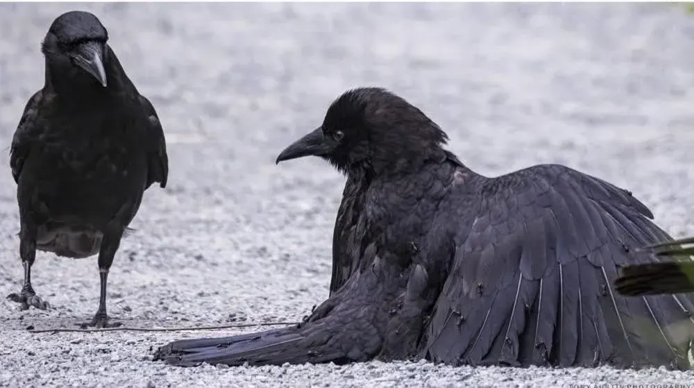 เมื่ออีกกาไม่สบาย... มันเลือก "อาบมด" แทนการหาที่หลบภัย!