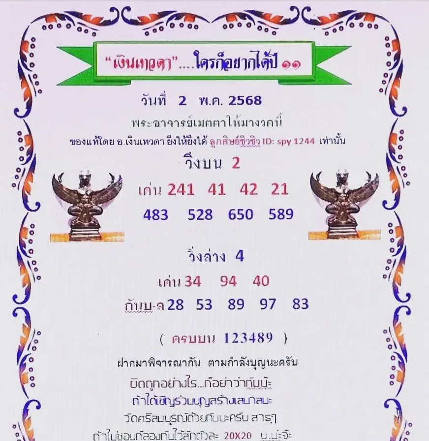 ถึงอย่างไรก็ตามเลขดังกล่าวนี้เป็นเพียงเเค่เเนวทางที่นำมาฝากคอหวยเพียงเท่านั้น หากท่านใดจะนำไปพิจารณาลงทุนเเล้วนั้น โปรดใช้วิจารณาณก่อนการลงทุน ด้วยนะครับ ทั้งนี้ ขอให้คอหวย เองๆๆถูกรางวัลกันถ้วนหน้านะครับ