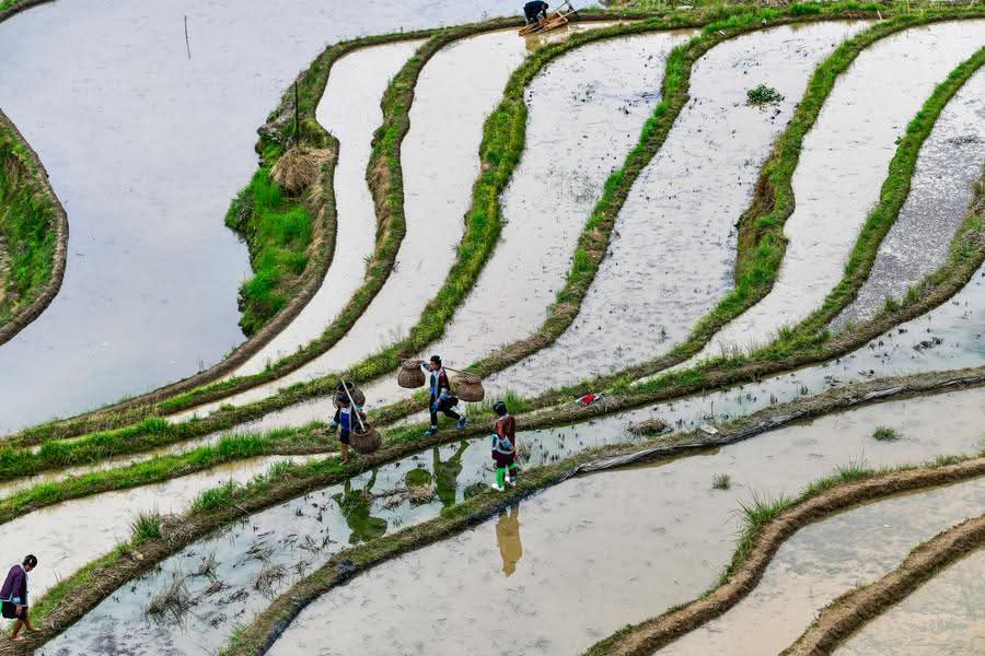 ภาพของเกษตรกรท้องถิ่นที่กำลังขะมักเขม้นออกแรงทำงานในทุ่งนา ช่วยเติมชีวิตชีวาให้กับภาพทิวทัศน์ที่สวยงามราวกับภาพวาด ไม่เพียงแต่เป็นแหล่งผลิตข้าวสำคัญ แต่ยังสะท้อนถึงภูมิปัญญาในการปรับตัวเข้ากับสภาพภูมิประเทศที่เป็นภูเขาสูงชัน ให้กลายเป็นพื้นที่เพาะปลูกที่สมบูรณ์