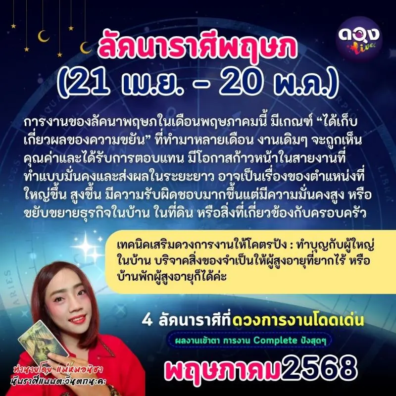 4 ลัคนาราศีที่ดวงการงานโดดเด่น ผลงานเข้าตา การงาน Complete ปังสุดๆ ในเดือนพฤษภาคม 2568 ทำนายโดย แม่หมอนิชา