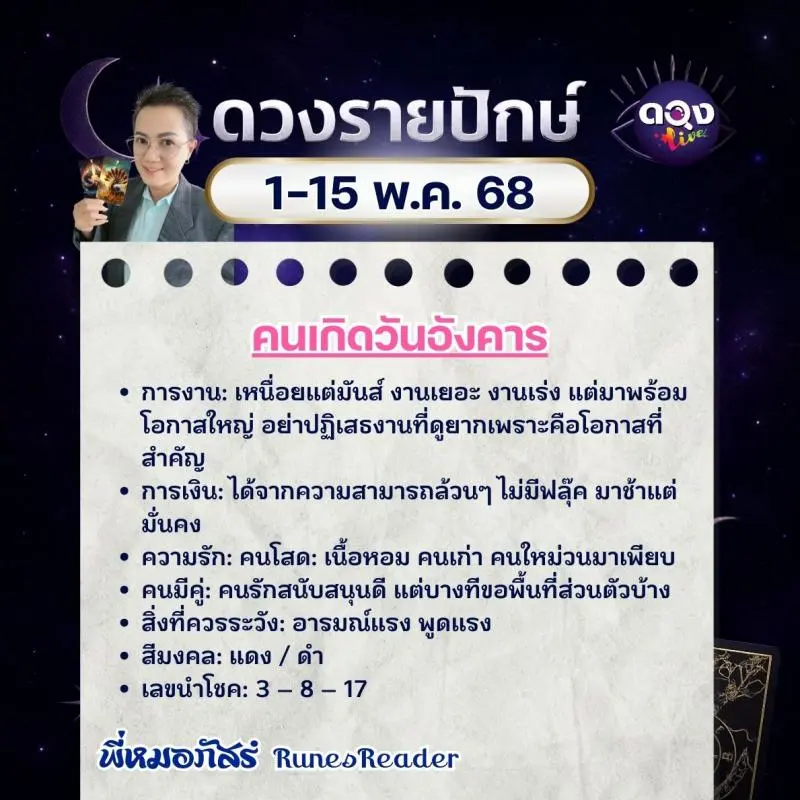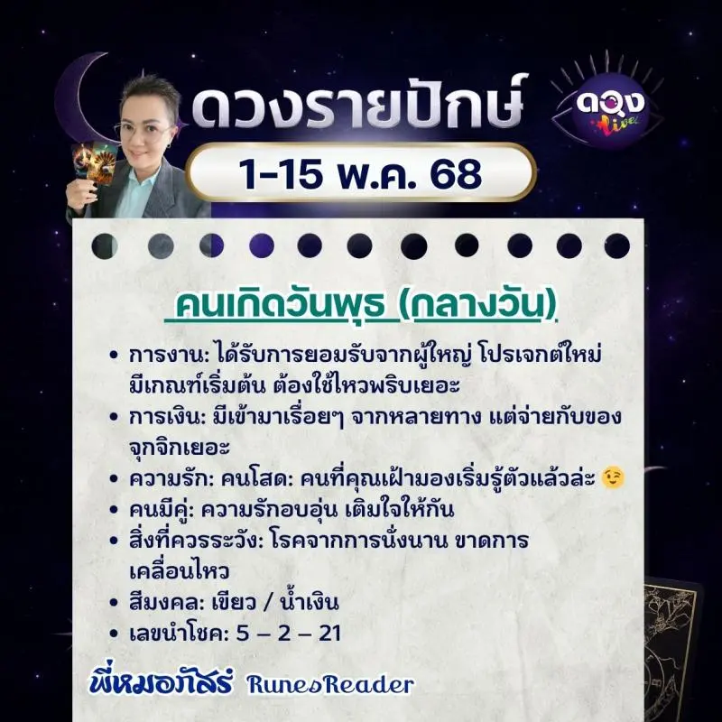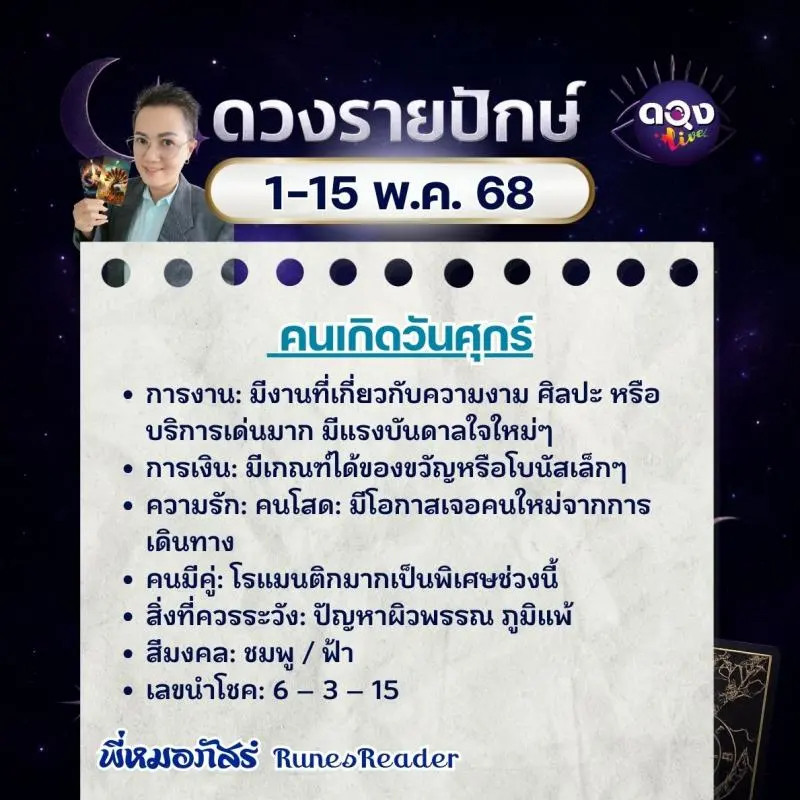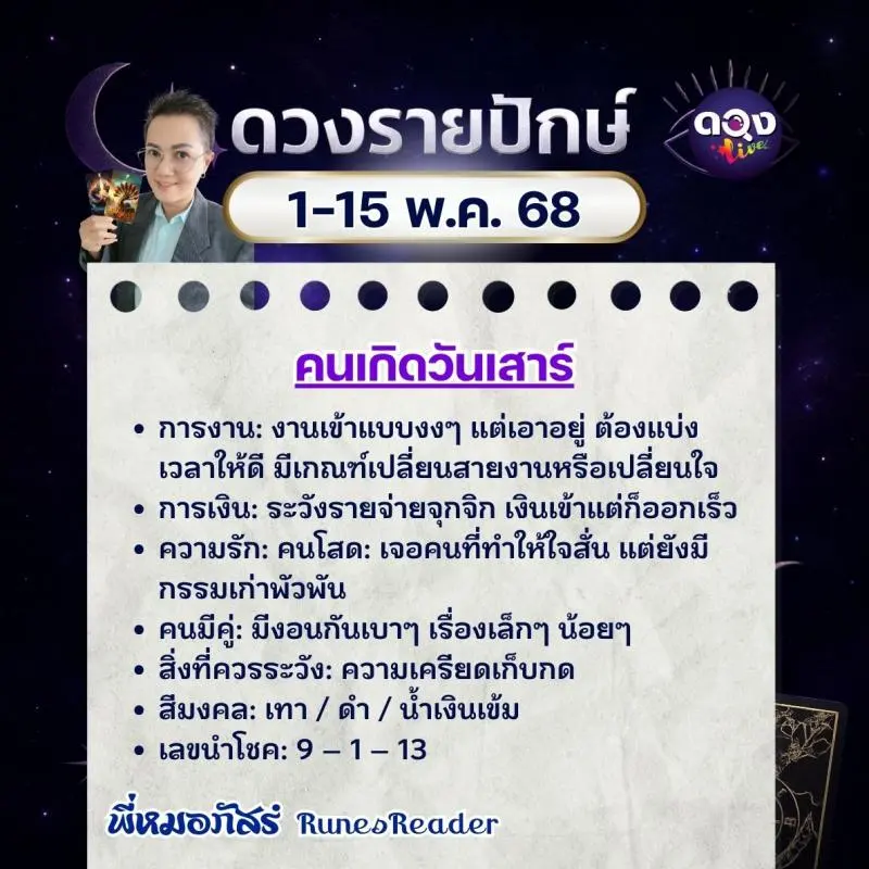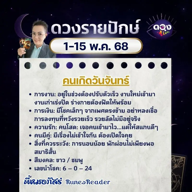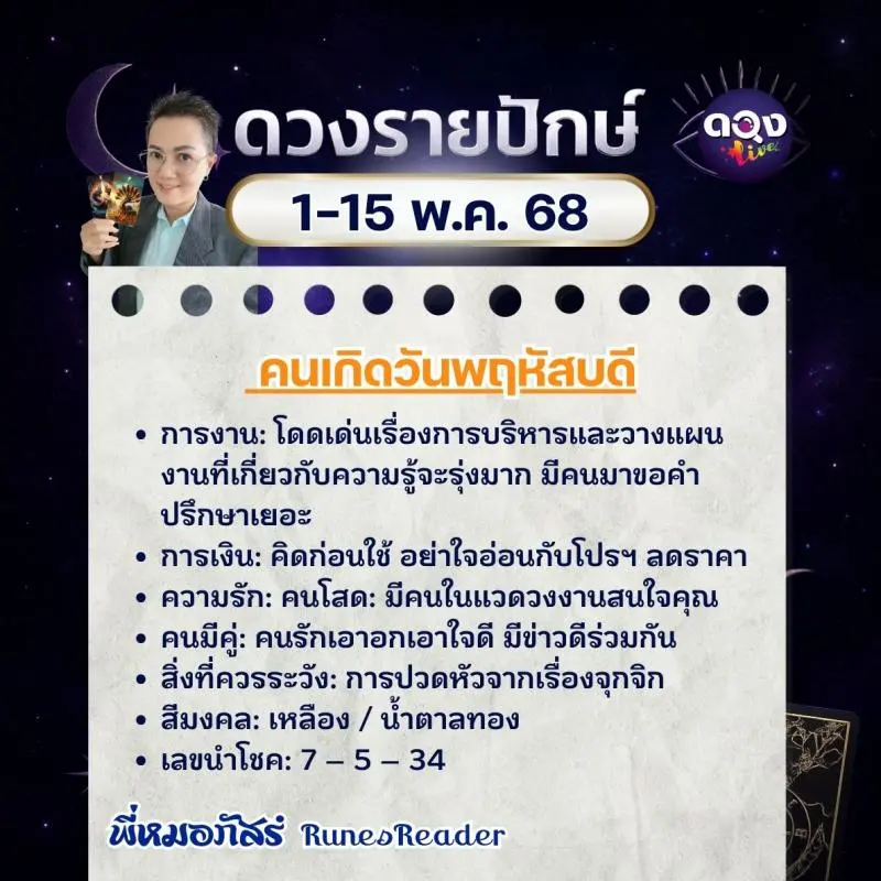 ดวงรายปักษ์ 1–15 พฤษภาคม 2568 ตามวันเกิด พี่หมอภัสร์ RunesReader