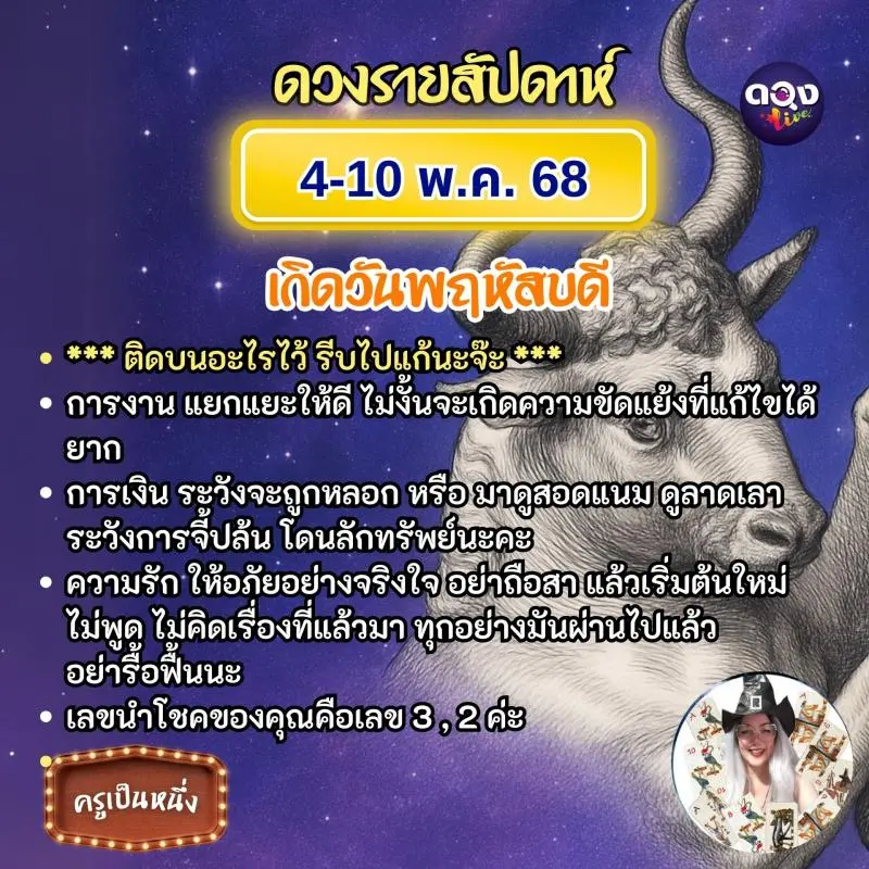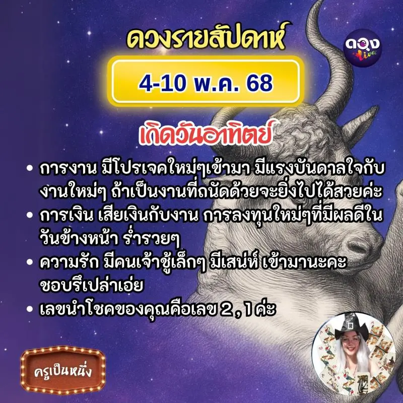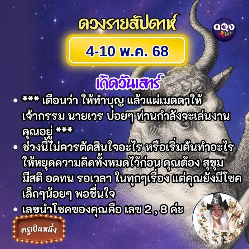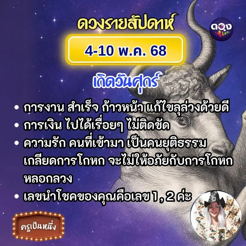 ดวงรายสัปดาห์ตามวันเกิด ประจำวันที่4-10 พ.ค. 68 by ครูเป็นหนึ่ง