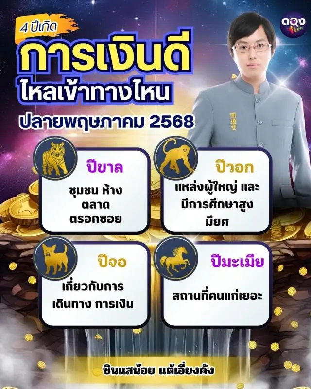 ใครที่เกิดปีนักษัตรต่อไปนี้ เตรียมตัวรับพลังดีๆ ทางการเงินช่วงปลายเดือนพฤษภาคม 2568 ได้เลยครับ