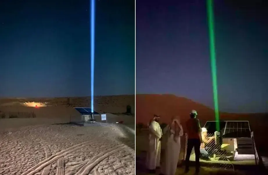 แสงสีเขียวที่เห็นพุ่งขึ้นสู่ท้องฟ้า คล้ายกับดาบเลเซอร์จากภาพยนตร์ Star Wars แท้จริงแล้วคือ "เครื่องยิงสัญญาณเลเซอร์" ซึ่งถูกติดตั้งในทะเลทรายอันกว้างใหญ่ของประเทศซาอุดีอาระเบีย อุปกรณ์ชิ้นนี้ไม่ได้มีไว้เพื่อความสวยงามหรือความบันเทิง หากแต่เป็นเทคโนโลยีที่มีเป้าหมายเพื่อช่วยชีวิตผู้คนที่อาจพลัดหลงทิศทางในสภาพแวดล้อมที่ร้อนระอุและโหดร้ายของทะเลทราย