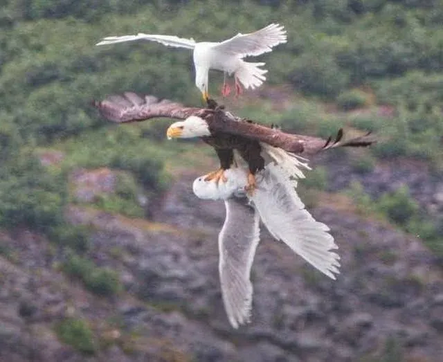 นกนางนวลมักถูกมองว่าเป็นเพียงนกทะเลที่ดูเรียบง่าย แต่ในบางสถานการณ์ พวกมันแสดงออกถึงความกล้าหาญอย่างน่าทึ่ง หนึ่งในพฤติกรรมที่น่าสนใจคือเมื่อนกนางนวลพยายามช่วยเหลือเพื่อนของมันที่ถูกนกอินทรีหัวขาว ที่เป็นนักนักล่าในธรรมชาติที่แข็งแกร่งและน่าเกรงขามจับตัวไป ด้วยความสามัคคีและไม่ยอมแพ้ นกนางนวลจะบินไล่ตามและพยายามจิกขนของนกอินทรีออก ทำให้นักล่าบินได้ลำบากขึ้น บางครั้งพวกมันถึงกับถ่ายใส่นกอินทรีเพื่อรบกวนหรือทำให้ศัตรูสับสน