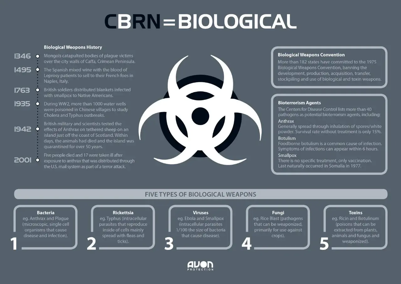 หากมีการโจมตีด้วยอาวุธชีวภาพ อาจใช้เชื้อ Bacillus anthracis ซึ่งเป็นแบคทีเรียที่ทำให้เกิดโรคแอนแทรกซ์ เชื้อแอนแทรกซ์เป็นอันตราย สามารถทำให้คนและสัตว์ป่วยหรือถึงขั้นเสียชีวิตได้ เชื้อแอนแทรกซ์อาจเป็นทางเลือกที่เป็นไปได้เนื่องจาก: