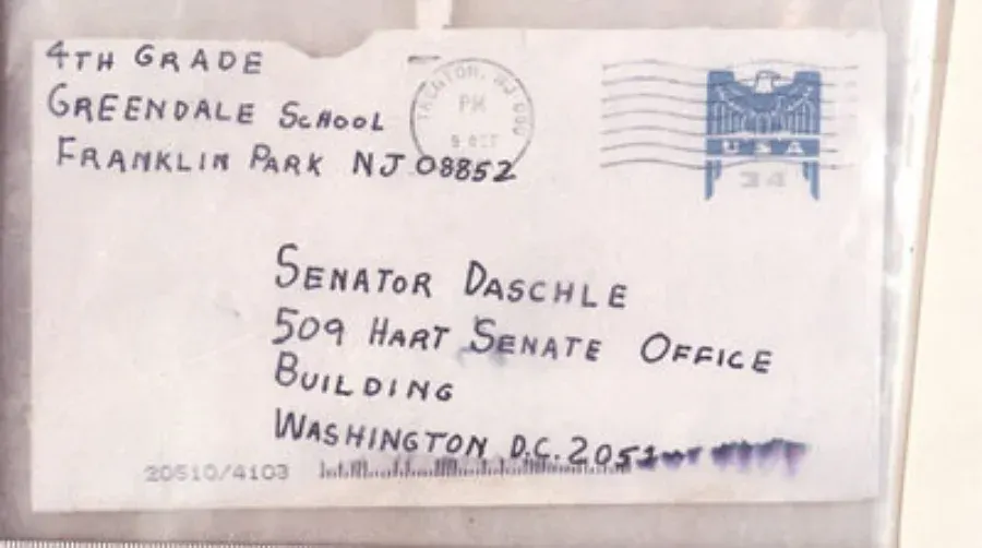 เป็นซองจดหมายที่บรรจุสปอร์ของเชื้อแอนแทรกซ์ ส่งไปยังทอม แดชเล วุฒิสมาชิกรัฐเซาท์ดาโกต้าจาก การโจมตีด้วยเชื้อแอนแทรกซ์เมื่อปี 2001