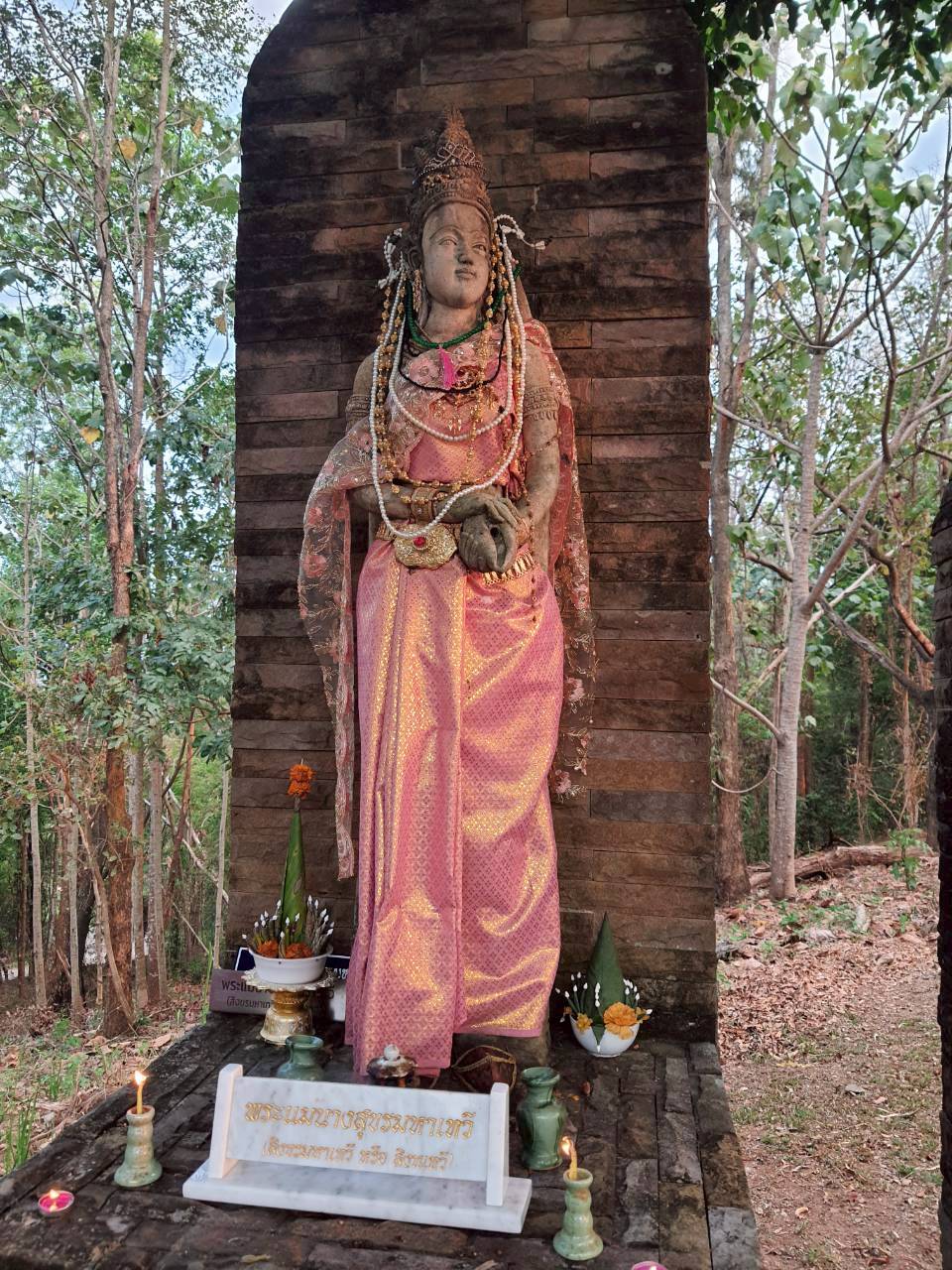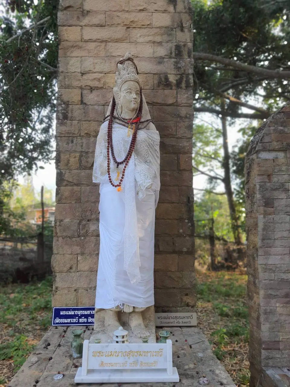 พระรูปฉลองพระองค์ พระนางสุขรมหาเทวี พระชายา (ตามหลักฐานที่ปรากฏในศิลาจารึก) ด้านซ้าย และ ชะแม่นางพระกำนัล (ตามความเชื่อในพื้นที่) ด้านขวา (องค์ที่๒) โดยปฏิมากรท้องถิ่น ณ ด้านทิศเหนือ ของพระรูปอนุสาวรีย์พ่อขุนผาเมือง ศูนย์พัฒนาศาสนาแคมป์สน มหาจุฬาลงกรณราชวิทยาลัย ตำบลแคมป์สน อำเภอเขาค้อ จังหวัดเพชรบูรณ์