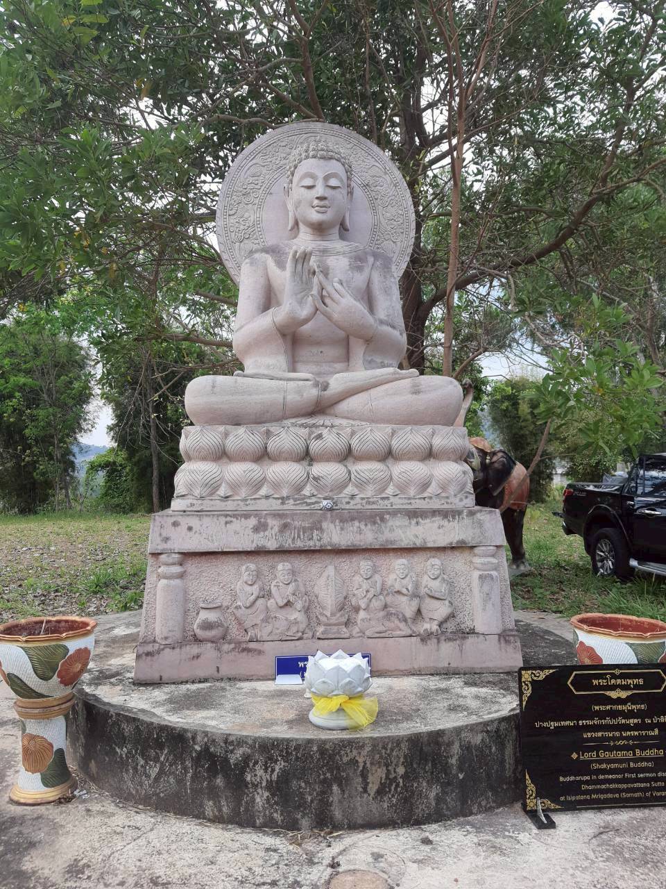 พระพุทธรูปปางปฐมเทศนา ประทานธรรมจักรกัปปวัตนสูตร ทางด้านหลัง องค์พ่อขุนผาเมือง ทางด้านทิศตะวันตกเฉียงเหนือ คนละเนินเขา ห่างไปประมาณ ๑๐๐ เมตร ซึ่งประดิษฐานร่วมกับ พระพุทธรูปปางนาคปรก ศิลปะขอมแบบลพบุรี และ พระรูปปั้นนูนสูง ครึ่งพระองค์ ของ พระเจ้าชัยวรมันที่ ๗ ( ผีฟ้าเจ้าเมืองศรีโสธรปุระ )
