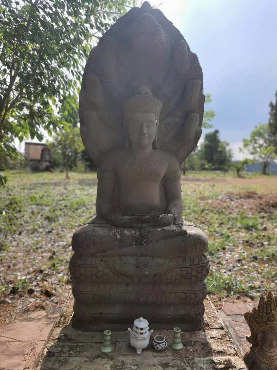 พระพุทธรูปปางนาคปรก ศิลปะขอมแบบลพบุรี ทางด้านหลัง องค์พ่อขุนผาเมือง ทางด้านทิศตะวันตกเฉียงเหนือ คนละเนินเขา ห่างไปประมาณ ๑๐๐ เมตร ซึ่งประดิษฐานร่วมกับ พระพุทธรูปปางปฐมเทศนา ประทานธรรมจักรกัปปวัตนสูตร พร้อมด้วย พระรูปปั้นนูนสูง ครึ่งพระองค์ ของ พระเจ้าชัยวรมันที่ ๗ ( ผีฟ้าเจ้าเมืองศรีโสธรปุระ )