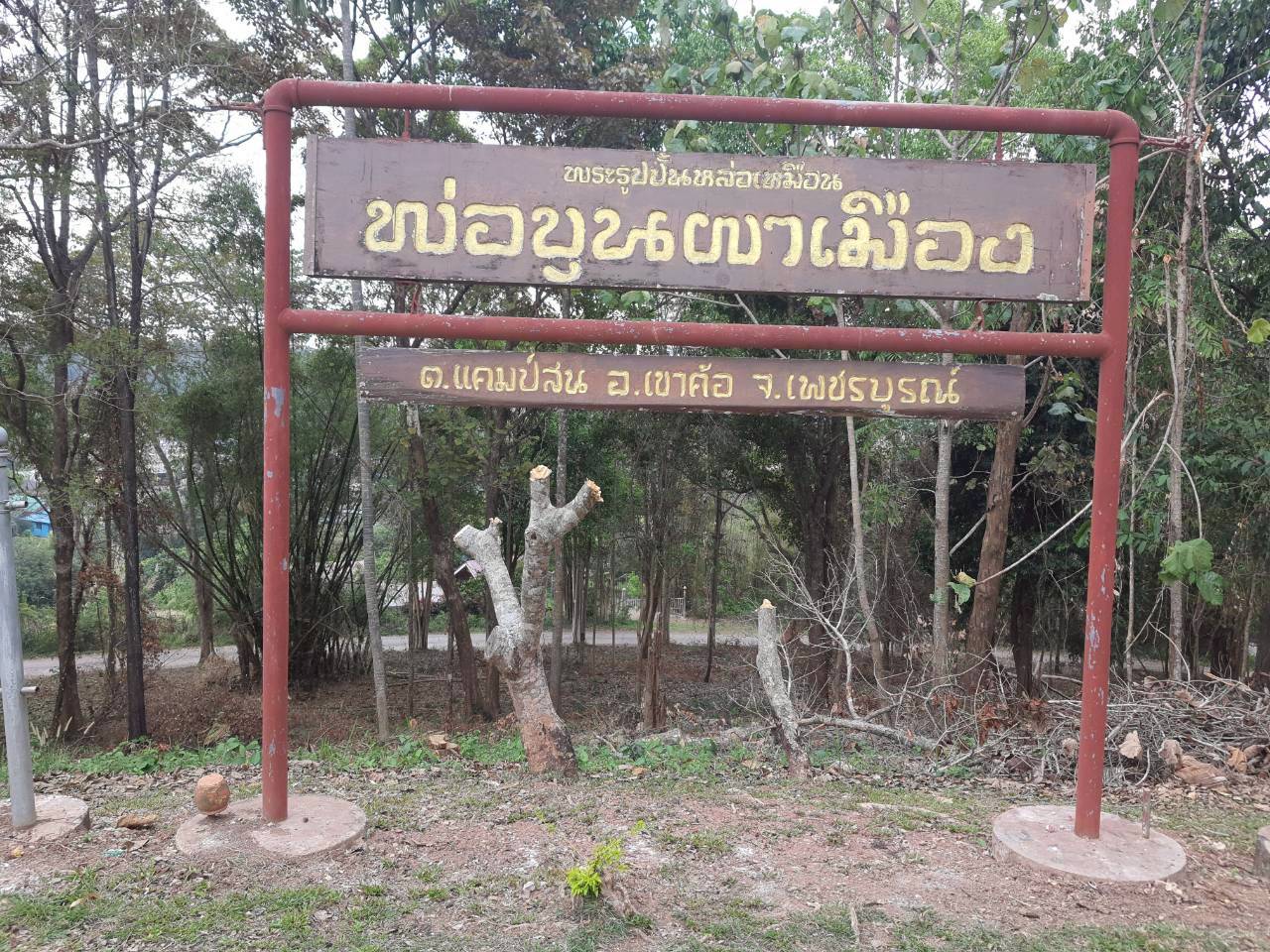 ป้าย พระบรมรูปราชานุสาวรีย์ พ่อขุนผาเมือง ณ ศูนย์พัฒนาศาสนาแคมป์สน มหาจุฬาลงกรณราชวิทยาลัย ตำบลแคมป์สน อำเภอเขาค้อ จังหวัดเพชรบูรณ์ฯ.