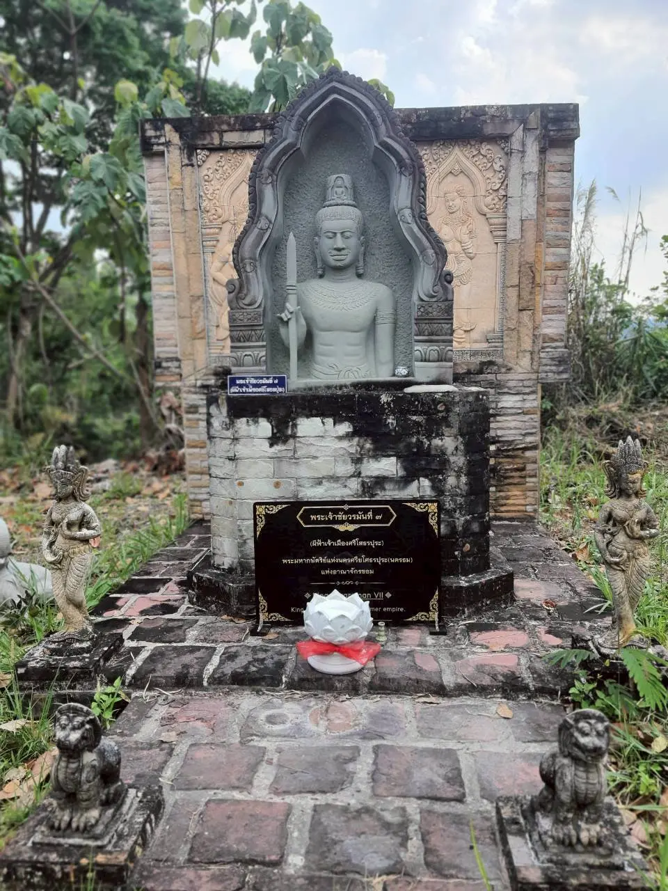 พระรูปปั้นนูนสูง ครึ่งพระองค์ ของ พระเจ้าชัยวรมันที่ ๗ ( ผีฟ้าเจ้าเมืองศรีโสธรปุระ ) ทางด้านหลัง องค์พ่อขุนผาเมือง ทางด้านทิศตะวันตกเฉียงเหนือ คนละเนินเขา ห่างไปประมาณ ๑๐๐ เมตร ซึ่งประดิษฐานร่วมกับ พระพุทธรูปปางปฐมเทศนา ประทานธรรมจักรกัปปวัตนสูตร พร้อมด้วย พระพุทธรูปปางนาคปรก ศิลปะขอมแบบลพบุรี