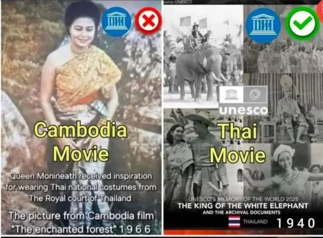 ในช่วงไม่กี่ปีที่ผ่านมา ภาพหญิงสาวเขมรในชุดสไบที่ปรากฏในภาพยนตร์เรื่อง The Enchanted Forest (1966) ที่เขียนบทและกำกับโดยสมเด็จพระนโรดมสีหนุ ได้ถูกนำมาเผยแพร่ซ้ำๆโดยชาวเขมรบางกลุ่ม เพื่ออ้างอิงว่า “เขมรเคยใส่ชุดไทย” หรือแม้กระทั่งอ้างว่าชุดไทยนั้นมีต้นกำเนิดจากเขมร ทั้งที่ในความเป็นจริงแล้วหลักฐานทางประวัติศาสตร์กลับบ่งชี้ตรงกันข้าม