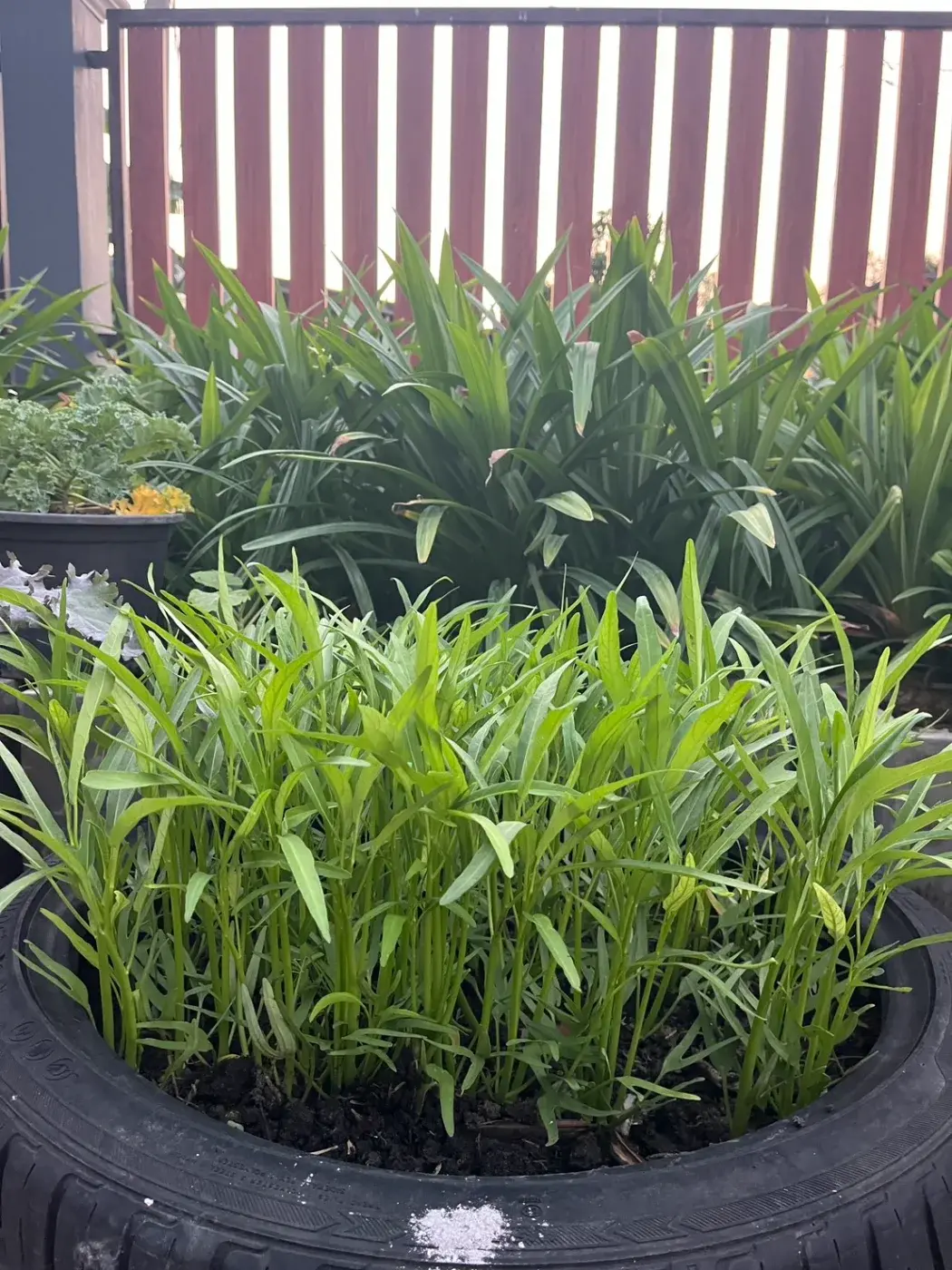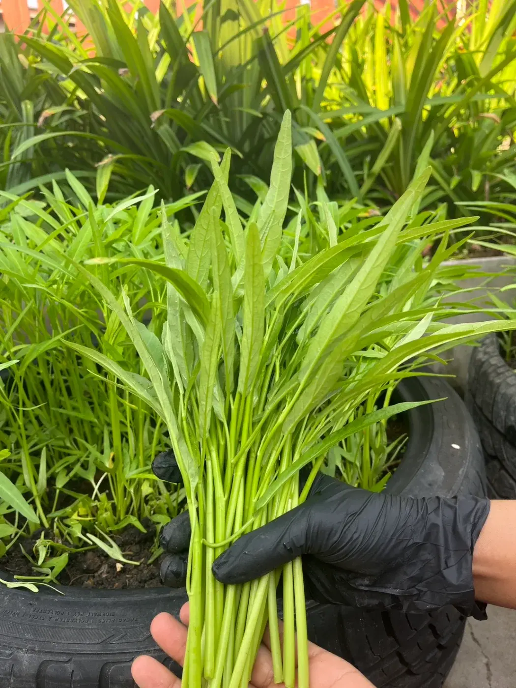 🌱 ผักบุ้งจีนในยางล้อรถยนต์